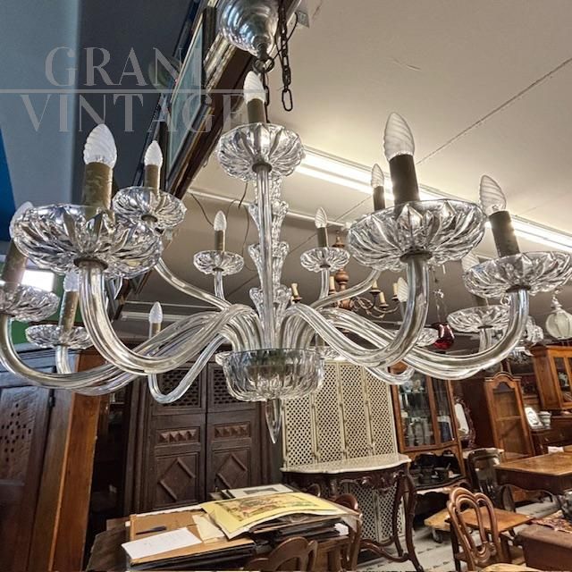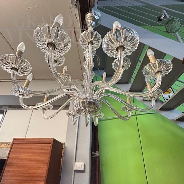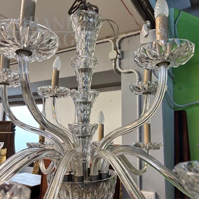 Grande lampadario antico della fine dell'800 in magnifico cristallo trasparente, caratterizzato da 16 punti luce, proveniente da un palazzo nobiliare. Il lampadario è completamente smontabile per garantire un trasporto in sicurezza. Gli attacchi per le lampadine sono in vetro dipinto a mano con forma di candela.