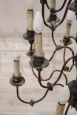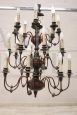 Grande lampadario antico in legno e ferro, inizi XX secolo, con 24 luci