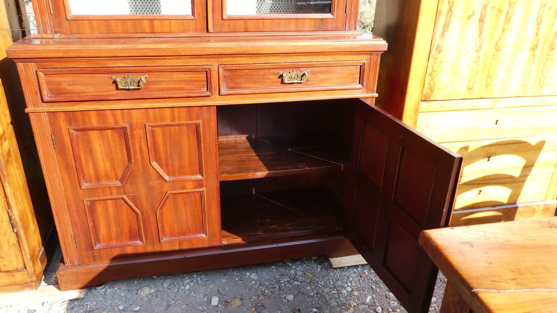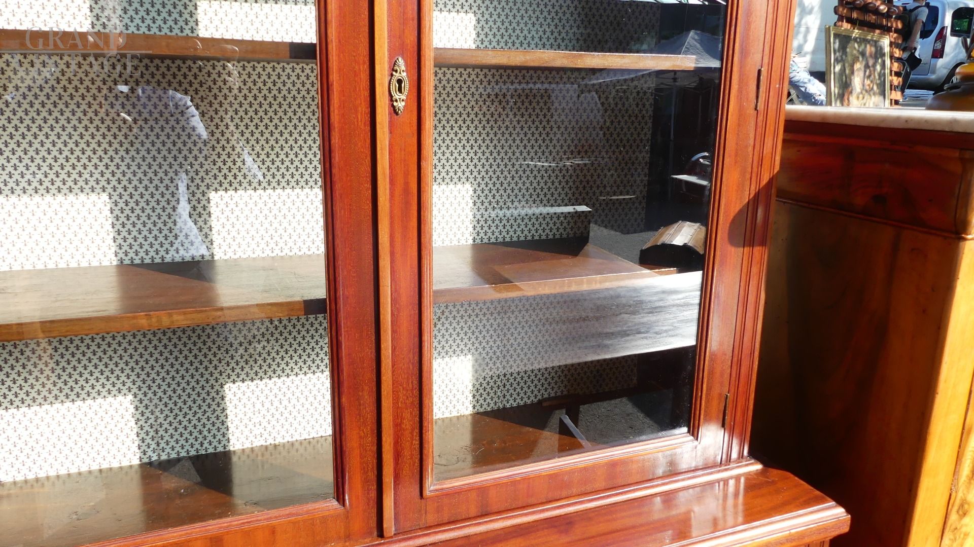 Bellissima vetrina Inglese del 1800 prodotta in legno rosso di mogano. Due antine e due cassetti.