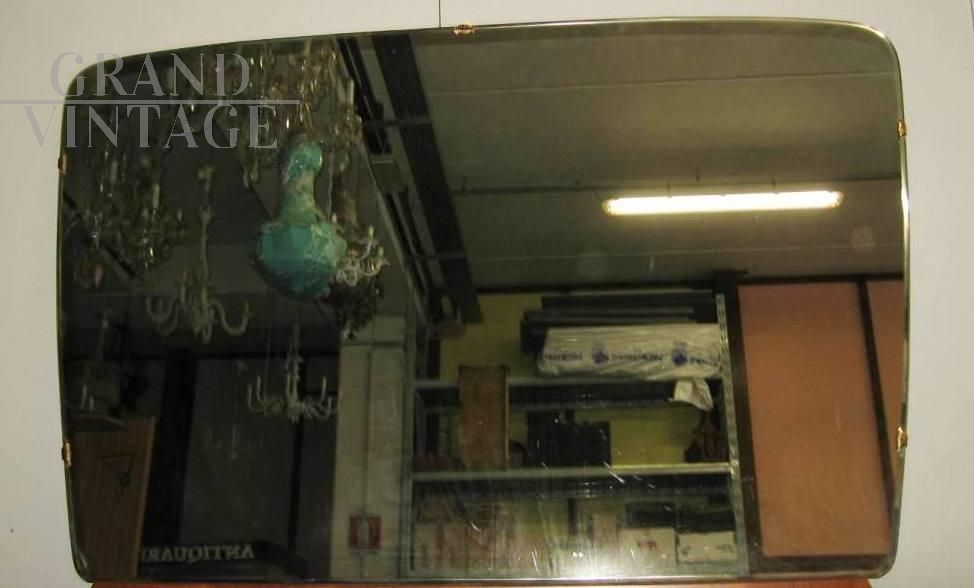 Specchio molato al bordo, presenta un piccolo alone in basso a sinistra, visibile in foto, dovuto al tempo. Completa di schiena in compensato.