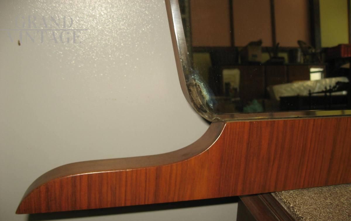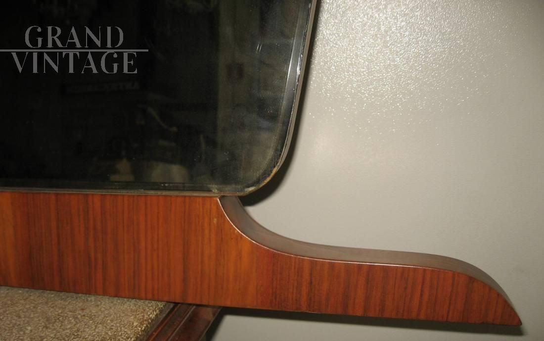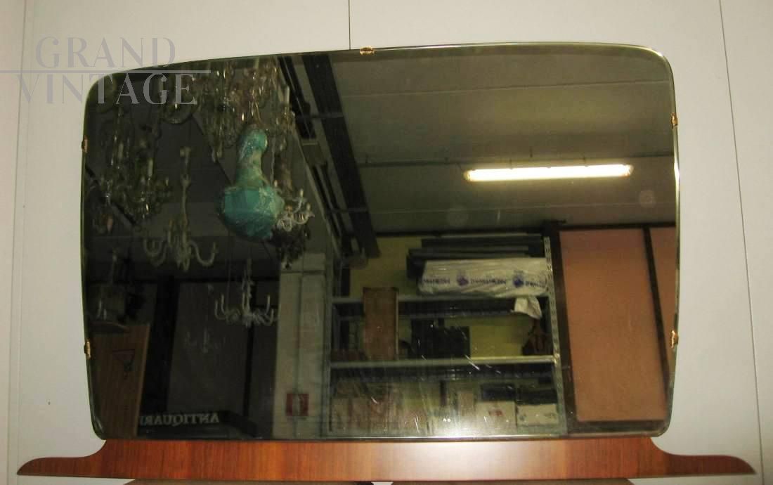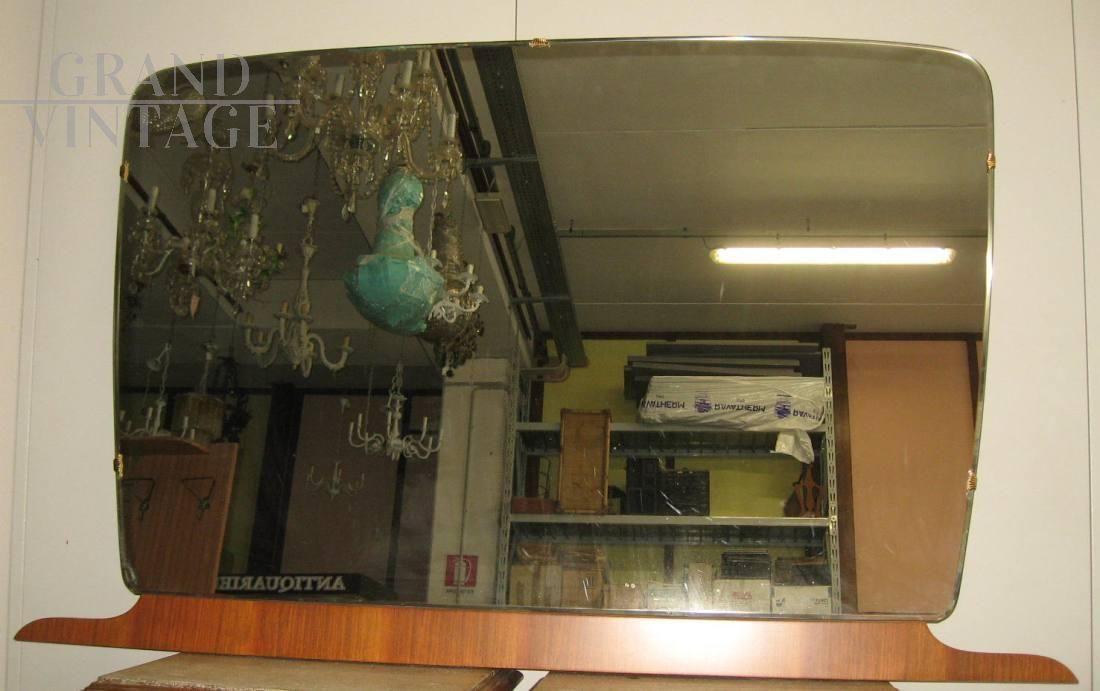 Specchiera vintage da appoggio anni '60, di grandi dimensioni, modernariato Italiano. La specchiera ha una forma sagomata con una piccola base in legno, removibile.