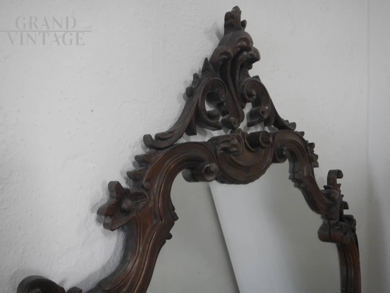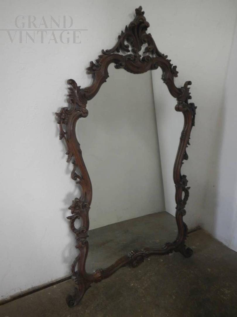 Grande specchio in stile barocco in tiglio intagliato, 1950