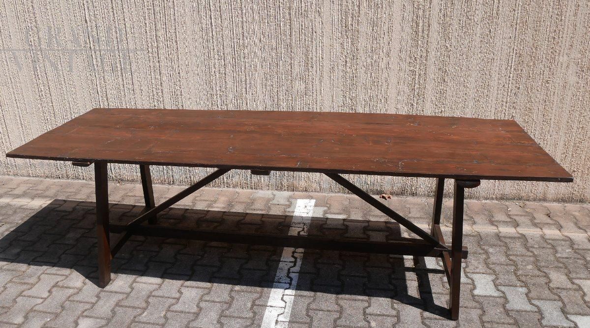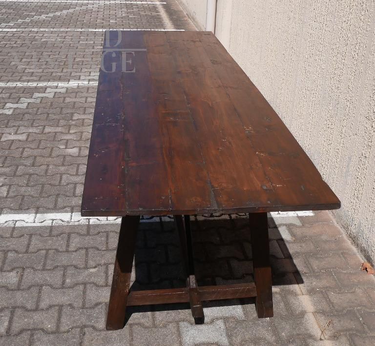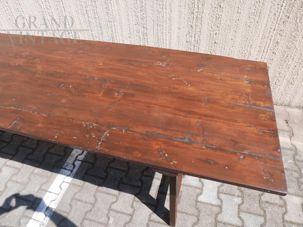 Grande tavolo vintage rustico in legno di abete massello modello fratino o capretta, epoca XX secolo, ideato su modello dei tavoli antichi del centro Italia. Il tavolo è stato restaurato tempo fa, ed è in ottimo stato.