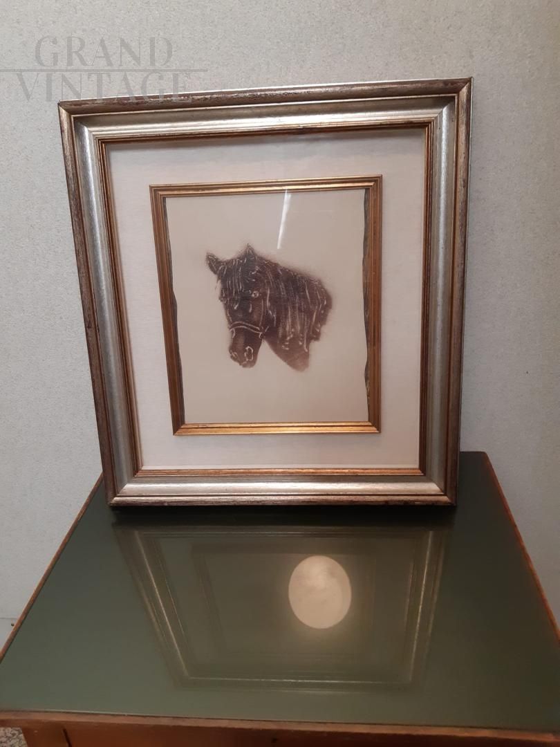Opera realizzata su pelle dall’artista lombardo Gregorio Mancino, celebre nel mondo per i suoi cuori, raffigurante un cavallo. Una tecnica curiosa e innovativa che l’artista ha voluto sperimentare negli anni ‘80. Il dipinto è munito di certificato di originalità firmato sul retro dallo stesso artista.