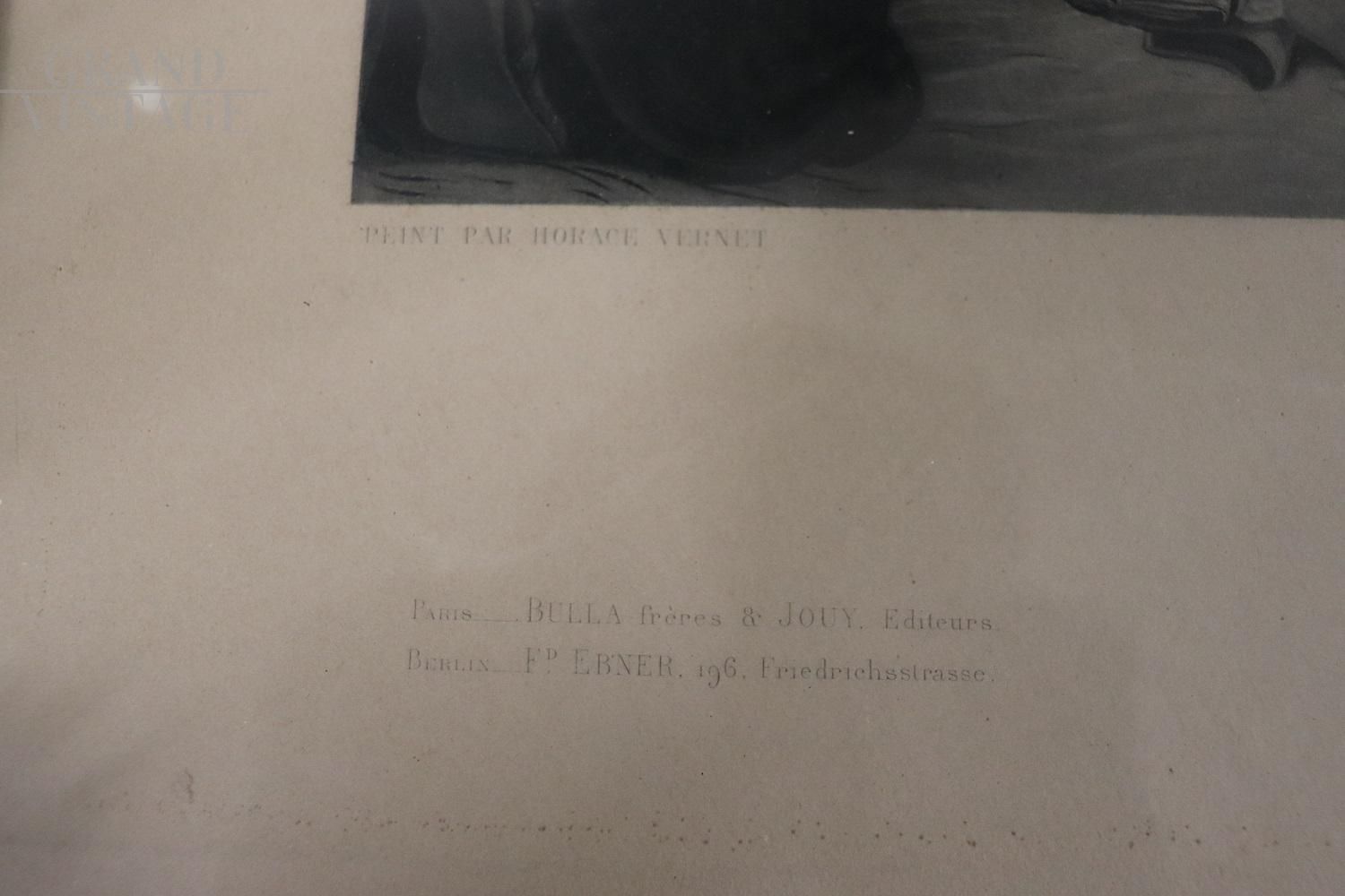 Bella coppia di incisioni antiche di Jazet Jean Pierre Marie della metà del XIX secolo con due soggetti diversi, "Luigi XV alla battaglia di Fontenoy" dell'11 maggio 1745, da un'opera del pittore Emile Jean Horace Vernet realizzata nel 1828, e "L'ultimo giorno di Pompei" da un'opera del pittore Frédérick-Henri Schopin realizzata nel 1850. La coppia di incisioni di Jazet Jean Pierre Marie ( Francia 1788/ 1871 ca.) sono complete di cornici originali coeve in legno dorato. Ottime condizioni, alcuni difetti dovuti all'età nella cornice dorata, prezzo trattabile.