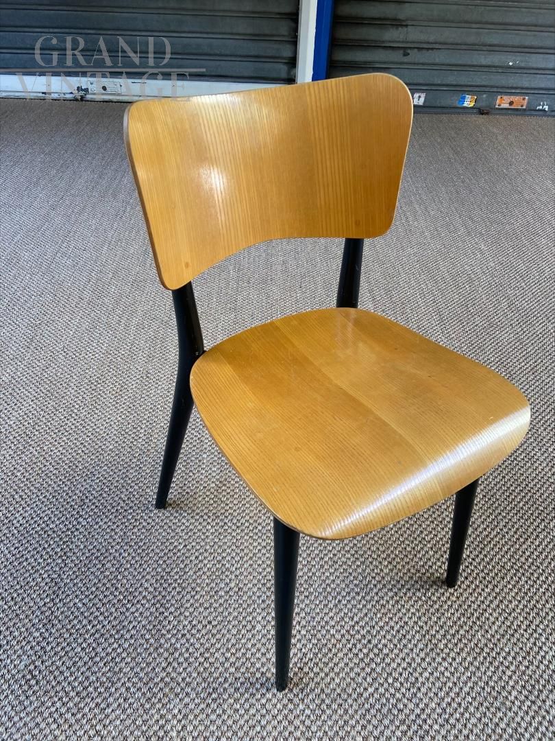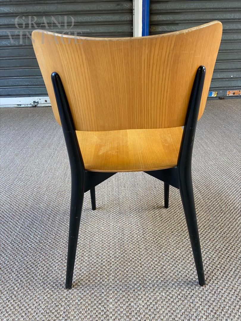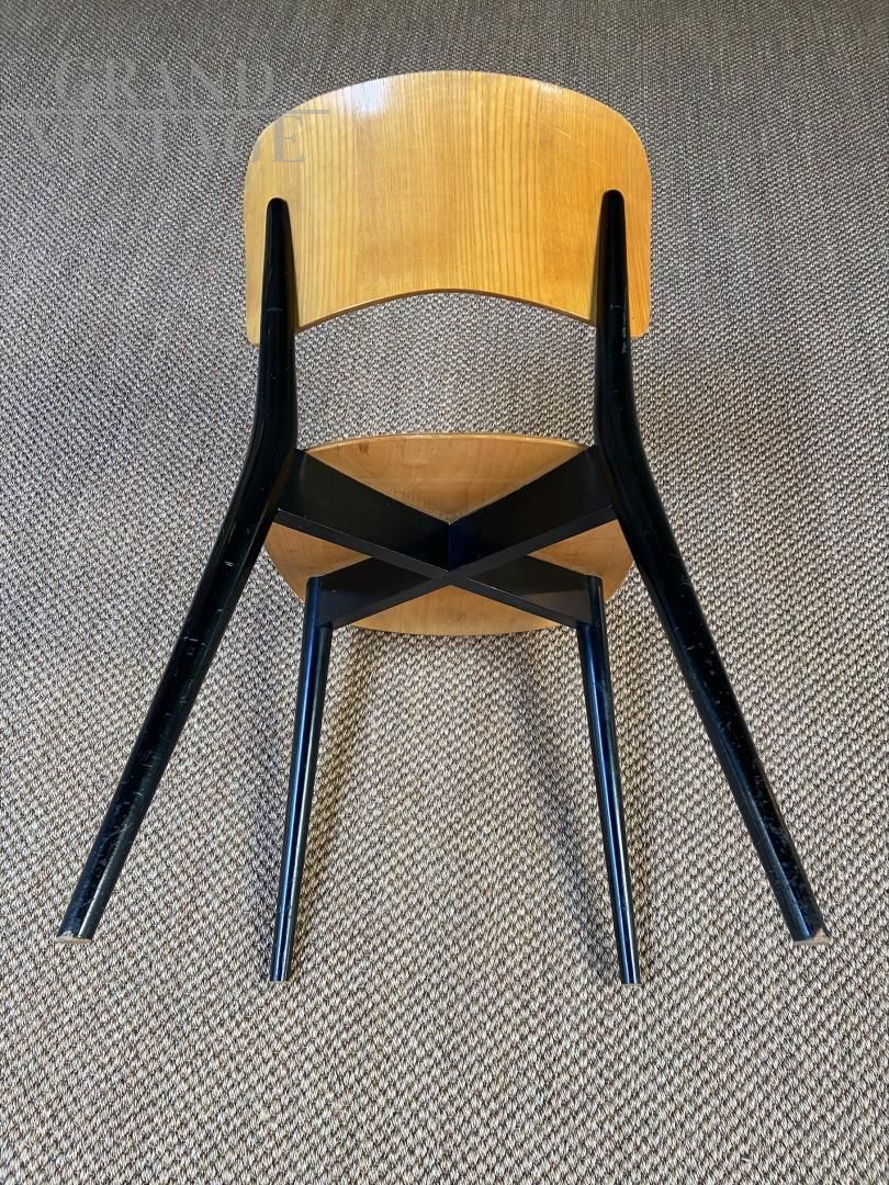 Sedia Kneuzzargenstuhl di Max Bill, iconica sedia con struttura a croce in acciaio laccato nero e seduta e schienale in legno, edition Möbelwerke Horgan Glarus, circa 1951.