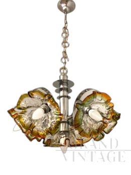 Lampada a sospensione a cappello in vetro di Murano, anni '70