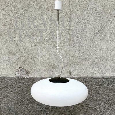 Lampada a sospensione in vetro bianco, Italia anni '50