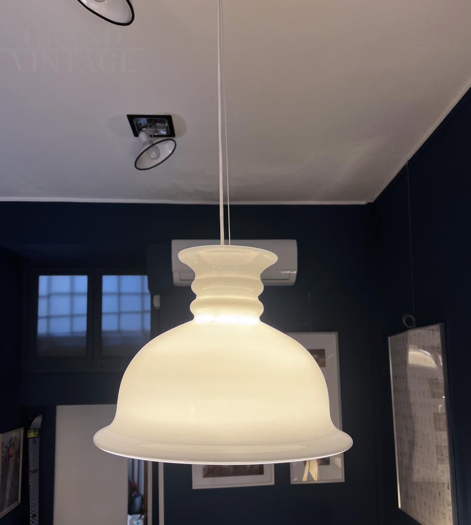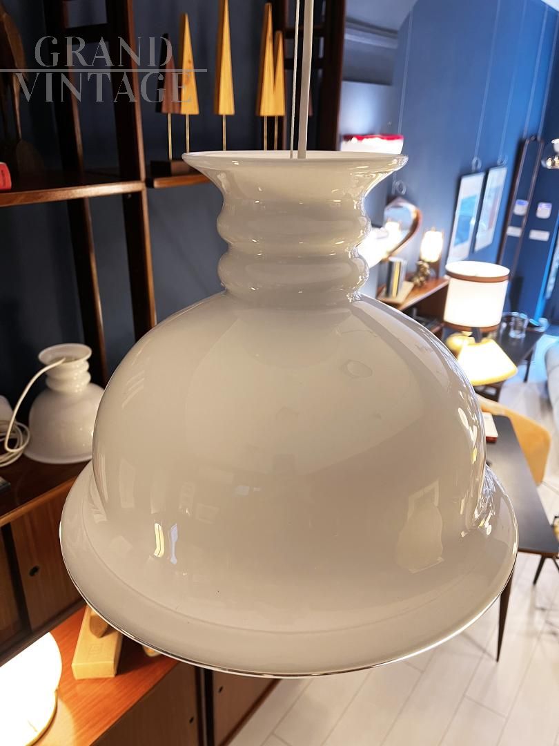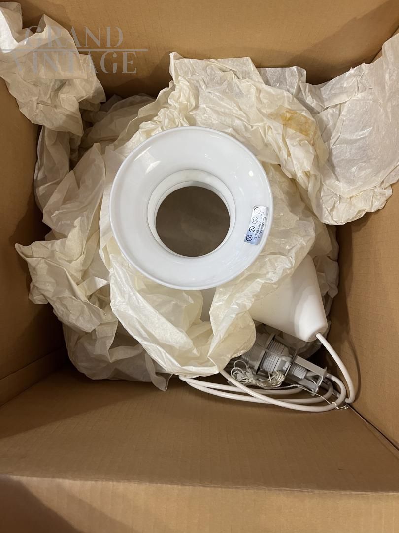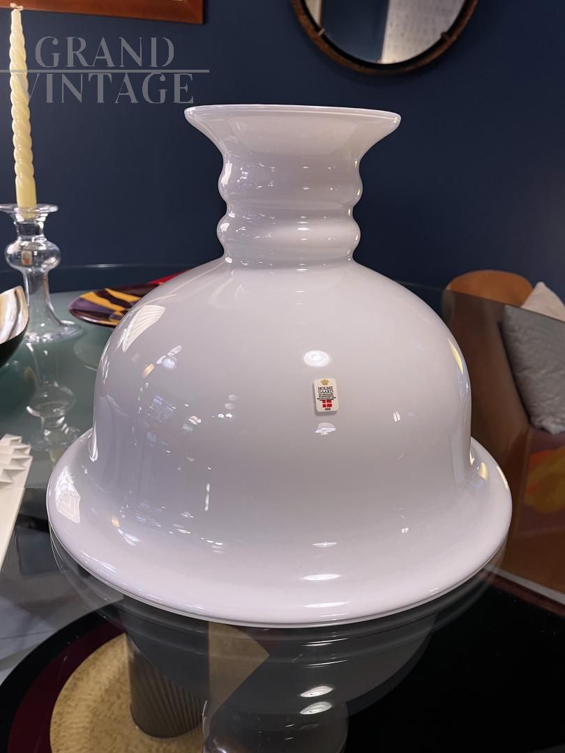 Lampadario lampada a sospensione Kropendel di Sidse Werner per Holmegaard Copenhagen, Danimarca anni '80, in vetro soffiato bianco, originale e completo di adesivo ed etichetta, viene venduto in condizioni pari al nuovo ancora nel suo imballo originale. Cavo e accessori non sono mai stati utilizzati, infatti il vetro ha ancora la sua etichetta attaccata. Il cavo è lungo 160 cm abbondanti.