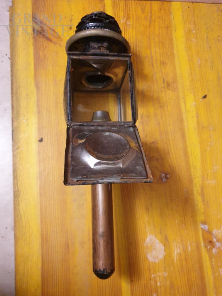 Lampada a corpo quadro per carrozze di servizio pubblico, guidate da cocchiere, quali " milord " e " landau " . È dotata di uno sportello apribile e due finestre laterali in vetro. La canna è smontabile e al suo interno è presente una molla dove va inserita la candela.