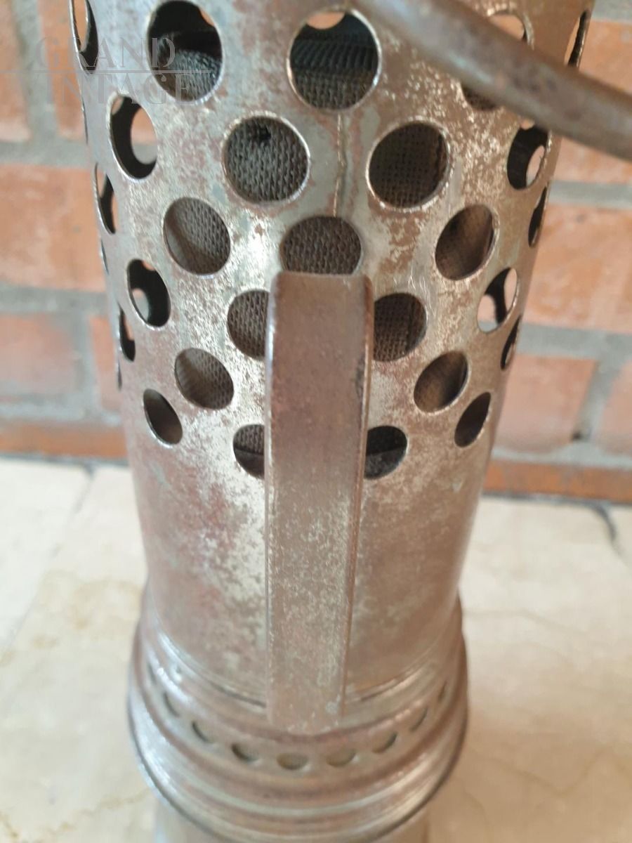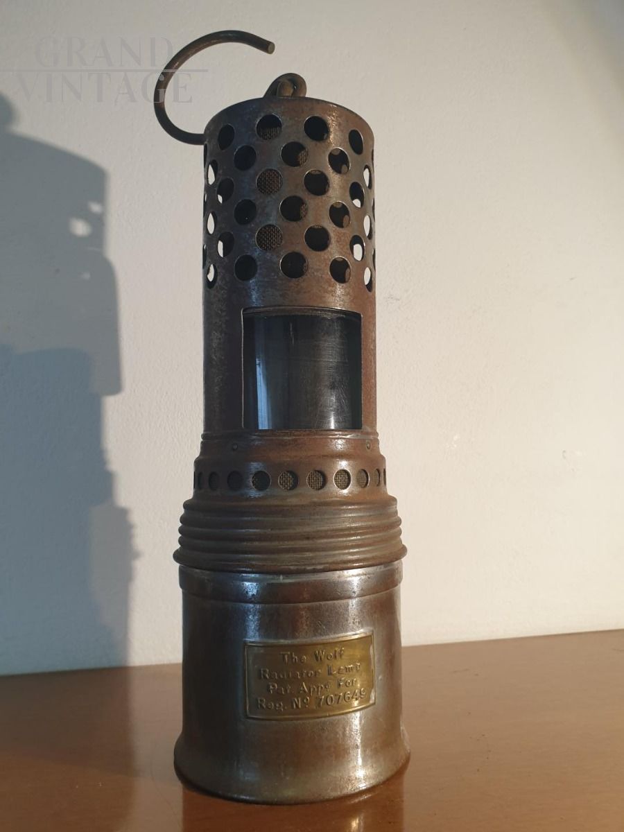 La lampada veniva messa sotto il radiatore dell'auto per assicurarsi che non gelasse in inverno, in un periodo antecedente all'esistenza dell'antigelo. La lampada è prodotta da " The Wolf Safety Lamp Co Ltd" a Sheffield ( Inghilterra) nel 1925. Il corpo è in acciaio zincato stampato, la base funge da serbatoio del carburante, che può essere benzina o nafta scozzese. Tappo a vite in ottone. L'accendino è montato in prossimità del tubo a doppio stoppino ed è azionato tramite maniglia a molla. Questa controlla il movimento di un perno, che può essere spinto verso l'alto in modo che la scintilla accenda subito lo stoppino quando si gira la maniglia. La regolazione dello stoppino è controllata dalla base. Il camino si avvita al contenitore. La lampada è dotata di una staffa e un gancio.