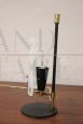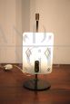 Lampada da tavolo design italiano anni '50 realizzata in vetro di Murano satinato con decori dorati, su struttura in metallo e ottone dorato. Una luce. Ottime condizioni, presenta alcuni segni del trascorrere del tempo nella parte dorata. Ottimo prezzo trattabile.