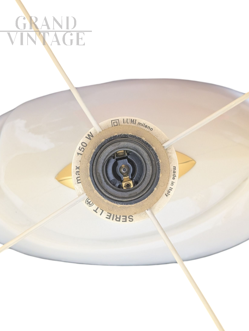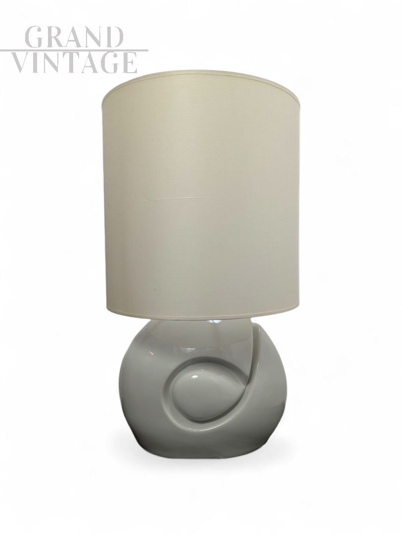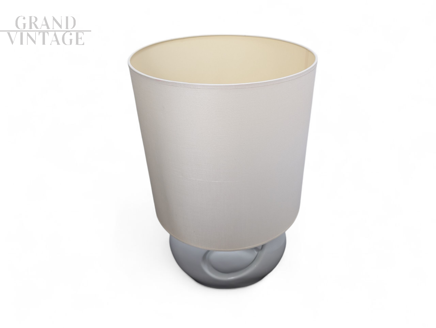 Questa raffinata lampada da tavolo vintage anni '80 firmata LUMI Milano unisce l’eleganza del design italiano alla funzionalità quotidiana. La base in ceramica smaltata, dal profilo scultoreo e moderno, è caratterizzata da una forma fluida con dettagli curvi e incavi che conferiscono movimento e personalità all'oggetto. Il paralume cilindrico in tessuto neutro crea un piacevole contrasto con la brillantezza della base, diffondendo una luce morbida e accogliente. Realizzata in Italia, questa lampada appartiene alla Serie LT, ed è progettata per lampadine fino a 150W, garantendo versatilità sia in ambienti domestici che professionali. Le condizioni sono perfette, presenta un taglietto sul paralume (vedi foto).