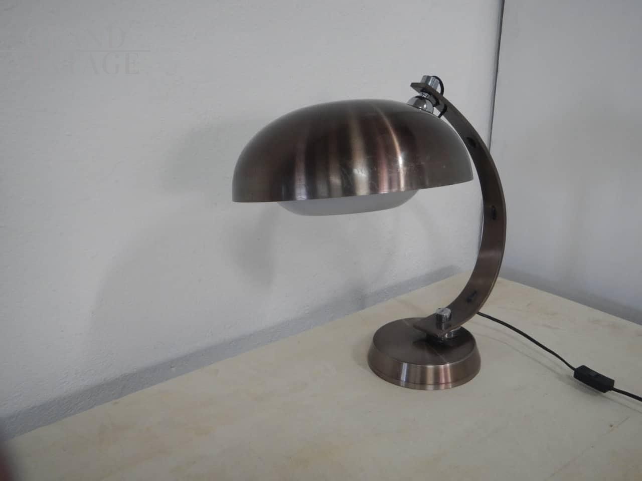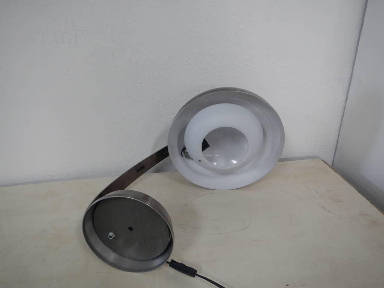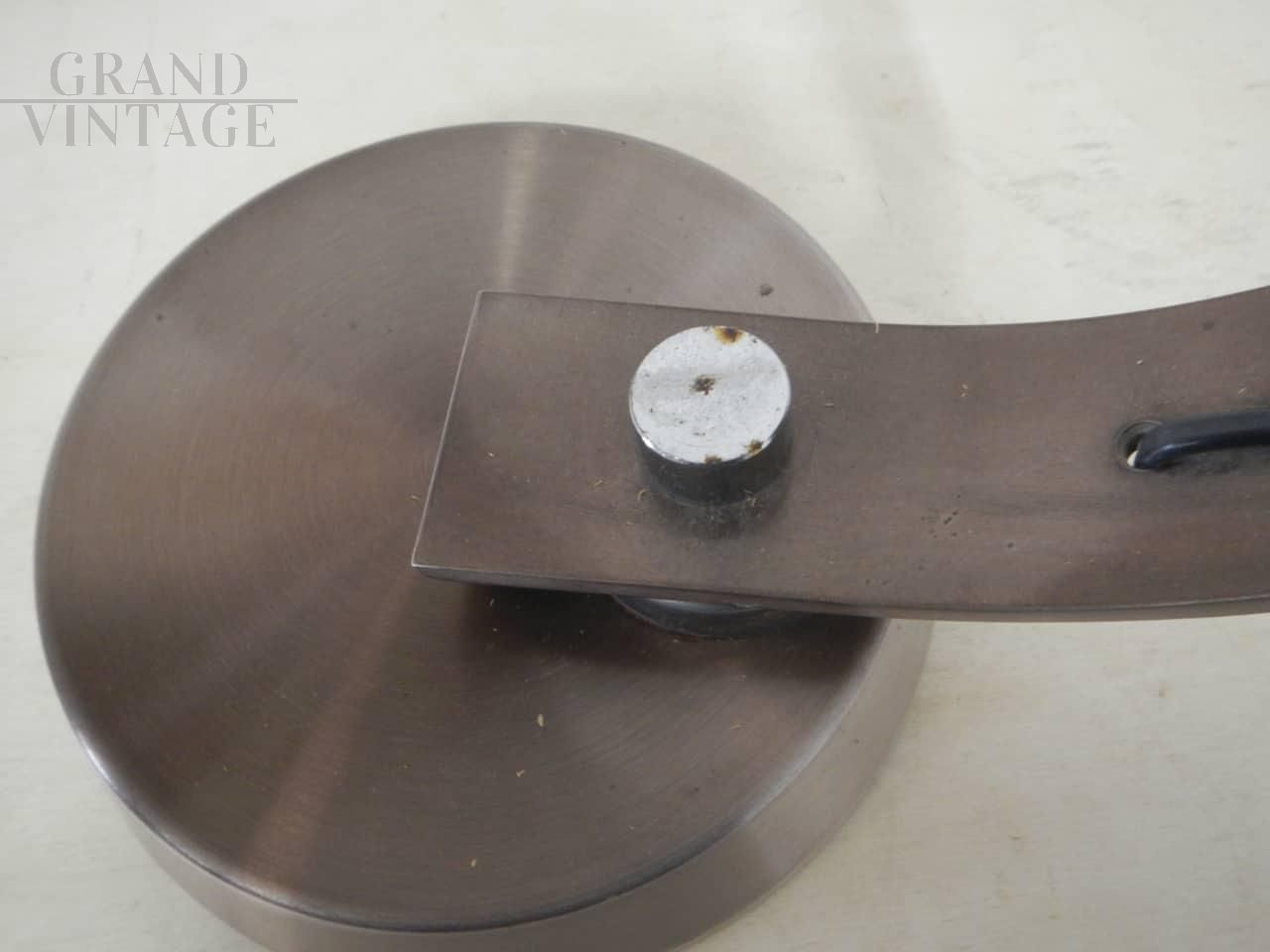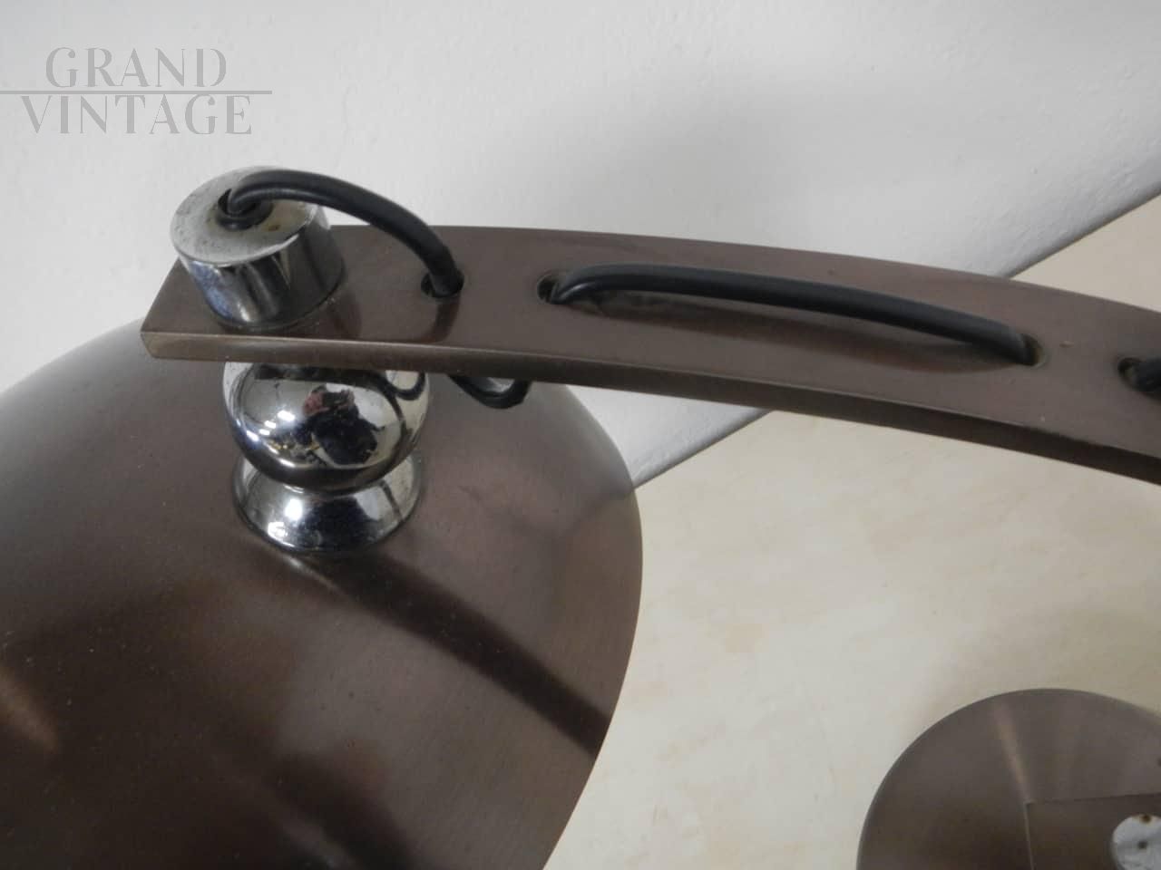 Grande lampada da tavolo in alluminio e metallo attribuita ad Arredoluce, prodotta in Italia negli anni '70. Funzionante con interruttore di accensione e spegnimento, impianto originale. In buone condizioni, con segni di usura sulla calotta della lampada, come da foto.