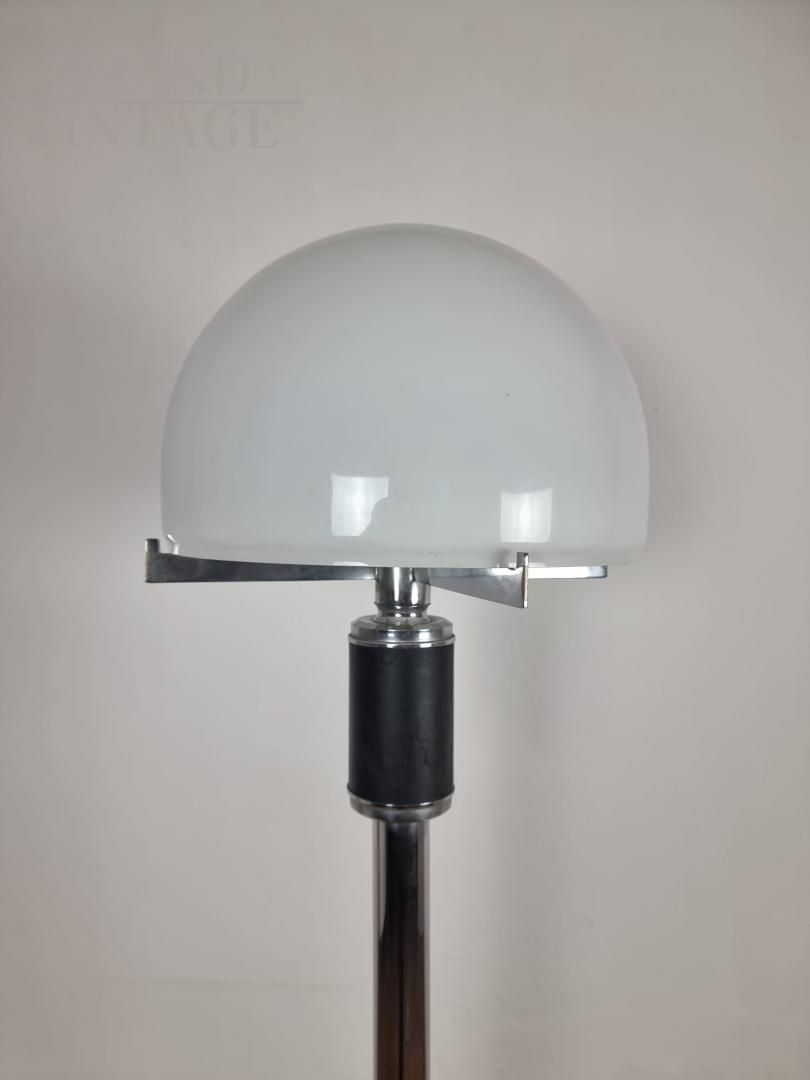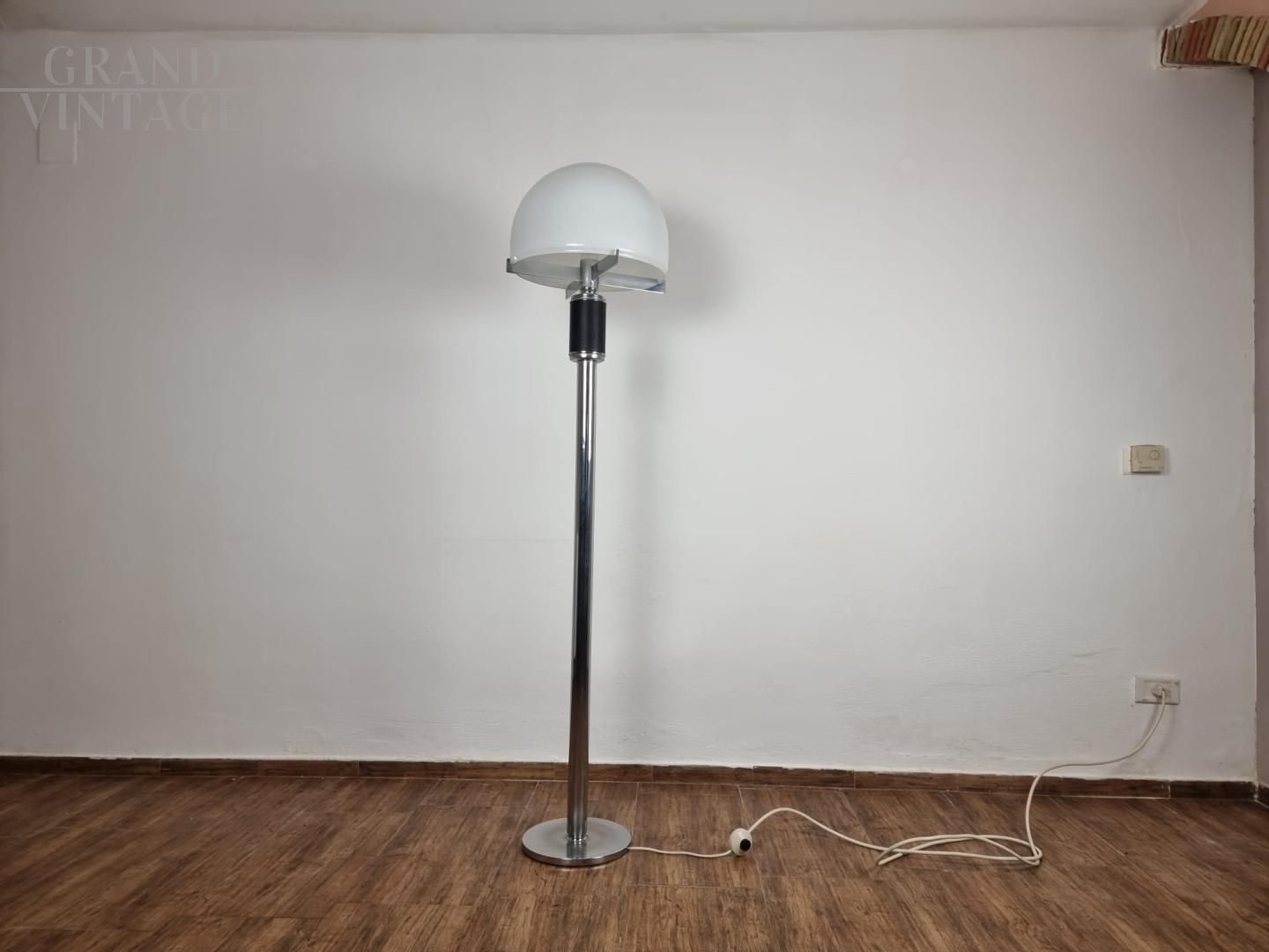Lampada da terra anni '60 in acciaio cromato e vetro