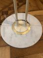 Piantana lampada da terra design Stilnovo originale anni '50 con struttura a due steli in metallo laccato color crema, paralume e bilanciere in metallo laccato rosso, dettagli in ottone e base in marmo. In ottime condizioni, con cavo ed interruttore originali, completa di bollino all'interno del paralume, presenta leggere abrasioni sul bilancere.