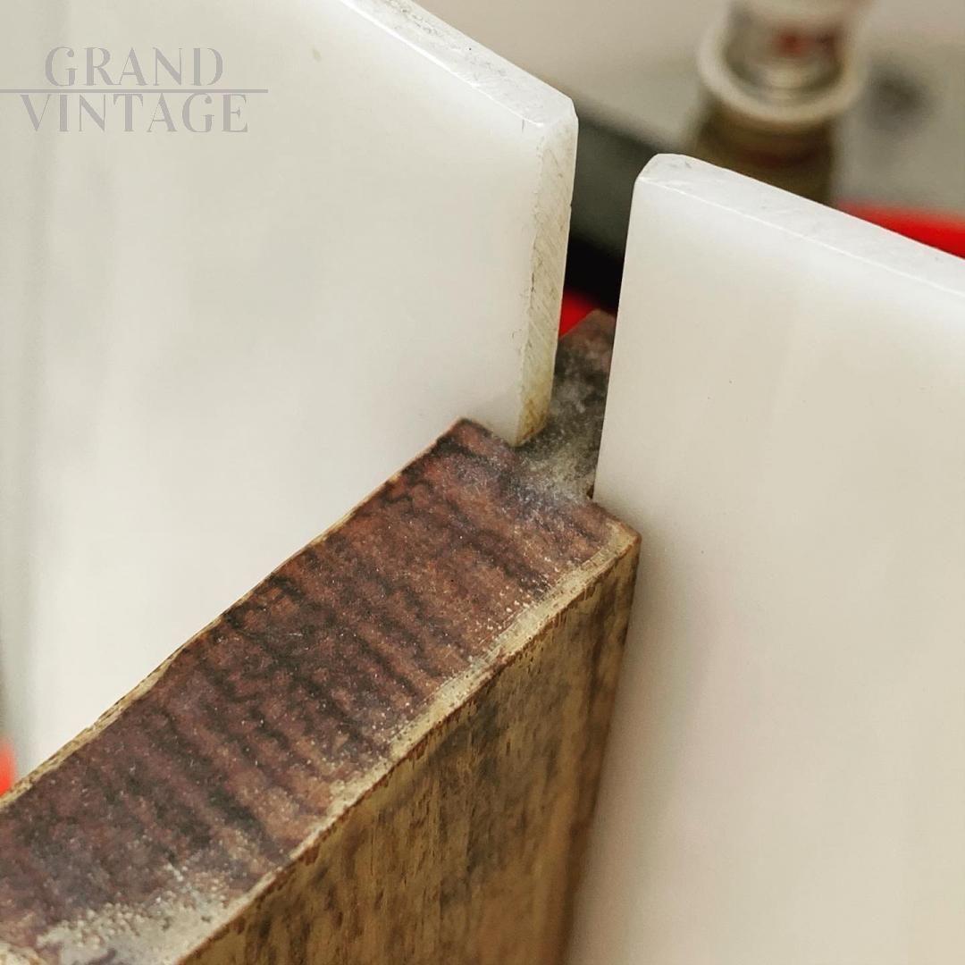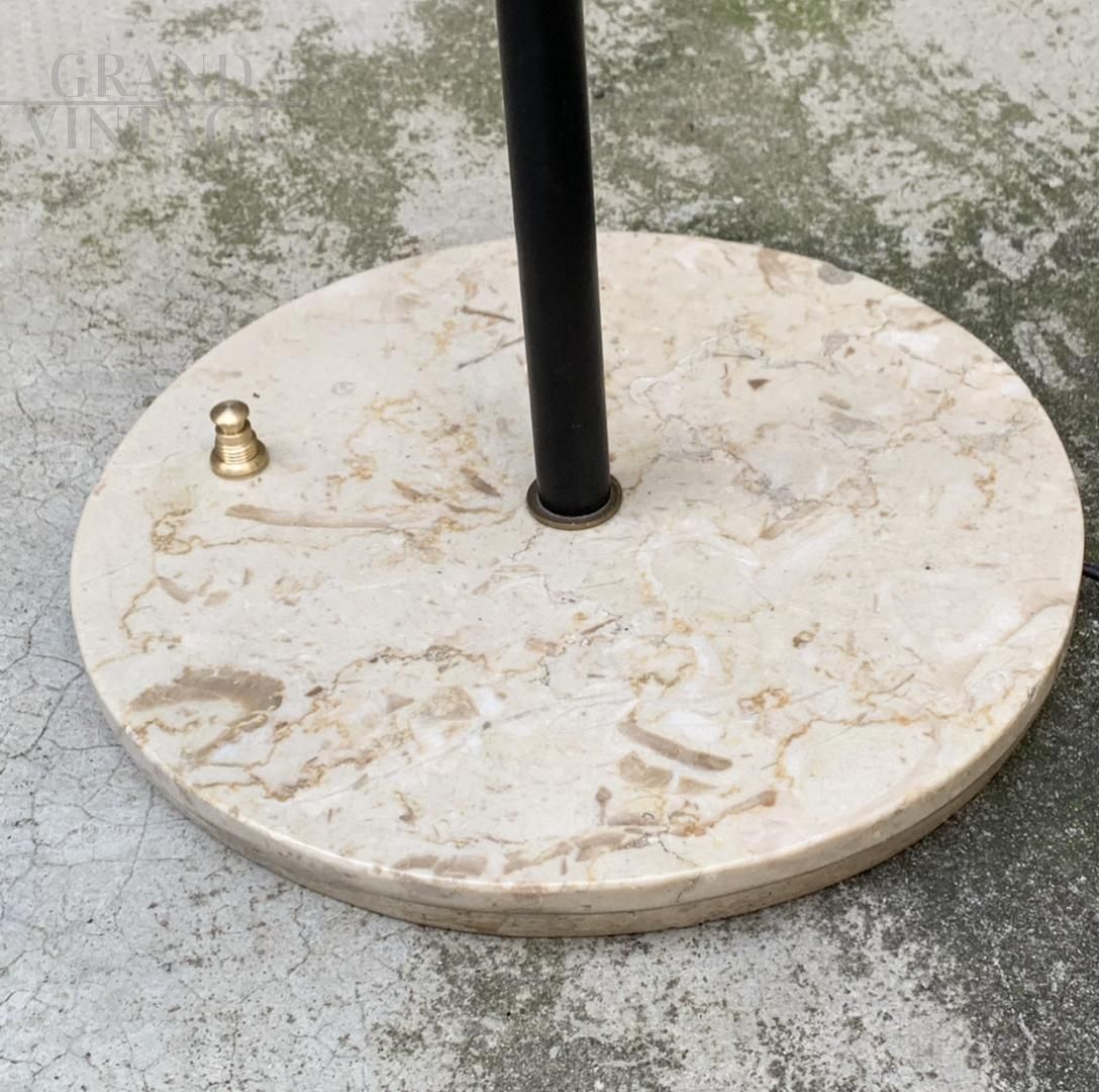 Lampada da terra piantana vintage design Esperia, anni '50, in metallo, plexiglas, ottone, base in marmo e dettagli in legno. La lampada richiama, nello stile, le produzioni di Esperia ma non ha etichetta né alcun segno. Interruttore in ottone sulla piastra in marmo, è stato sostituito con uno nuovo. Tutto il resto è originale.
