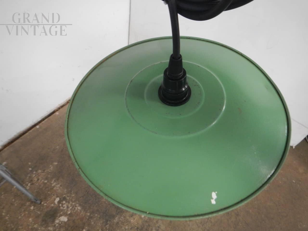 Lampada industriale a piattino in metallo verde chiaro, anni '40