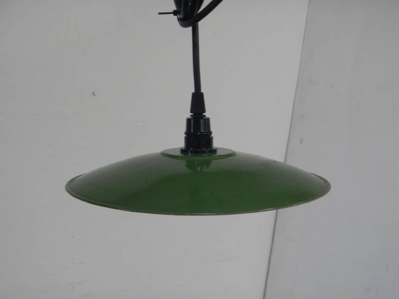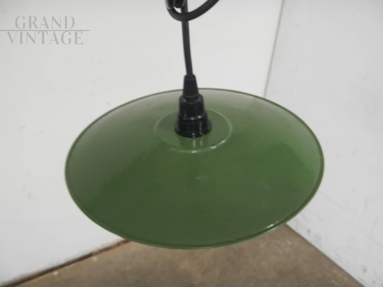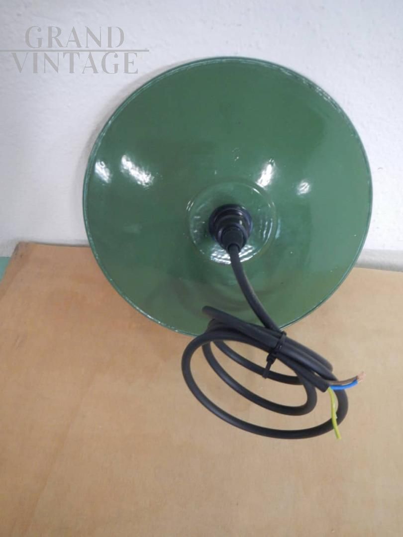 Lampada industriale a piattino in metallo verde scuro, anni '40
