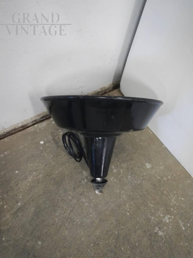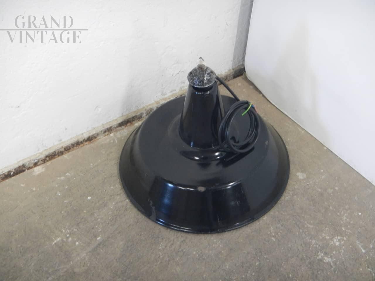 Lampada industriale in metallo nero con diametro 40 cm, anni '50