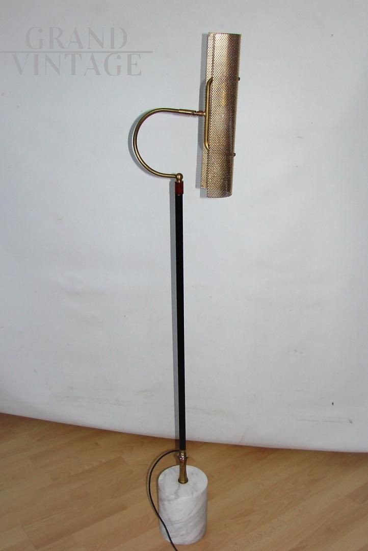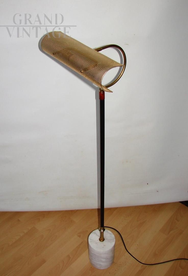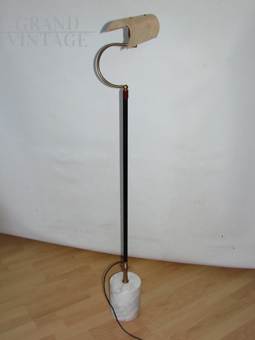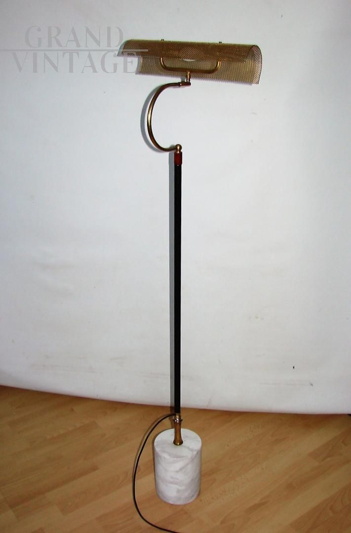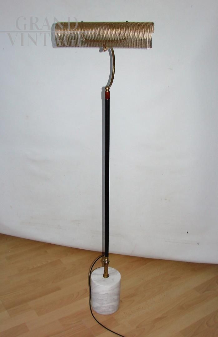 Lampada da terra piantana vintage anni '70 con struttura in ottone e metallo e base in marmo cilindrica. La lampada richiede una lampadina E14.