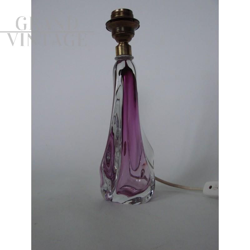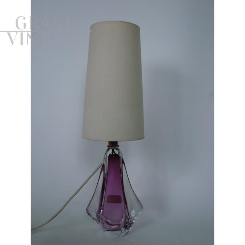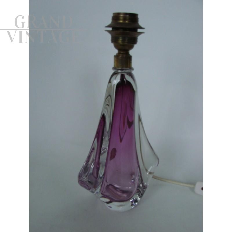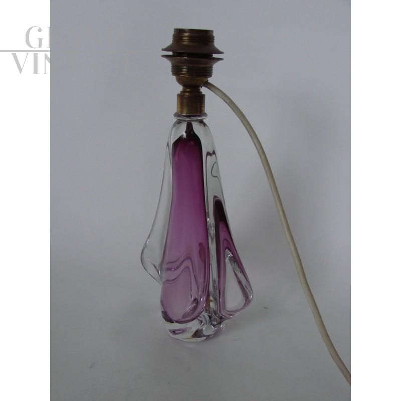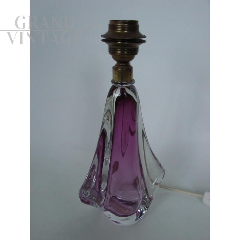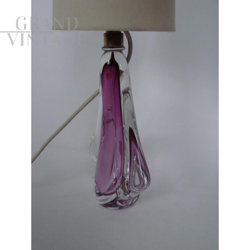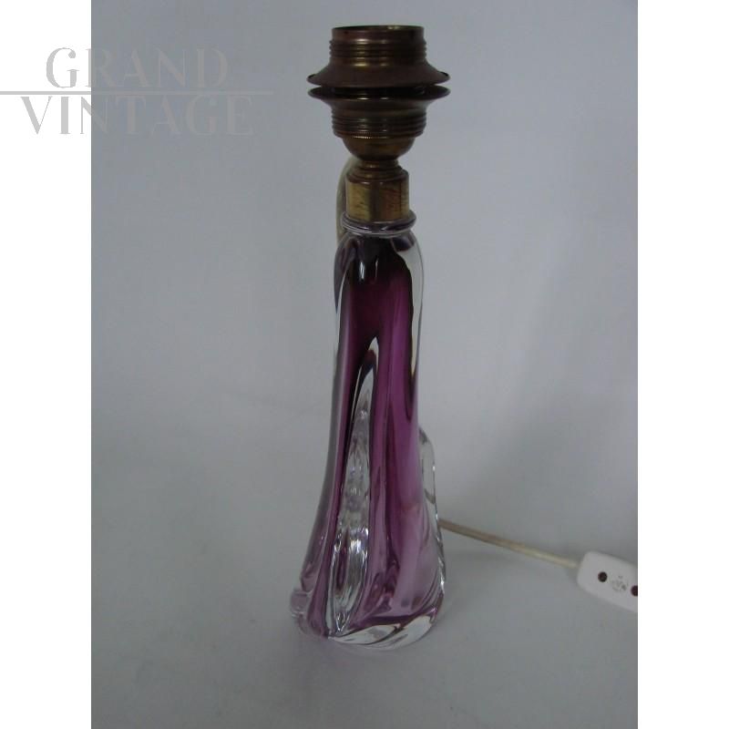 Lampada vintage Val St. Lambert viola, anni '50. La lampada è in cristallo originale Val St. Lambert con anima di colore viola, prodotta in Belgio negli anni '50, ha un paralume non originale. Necessita di una lampadina E27.
