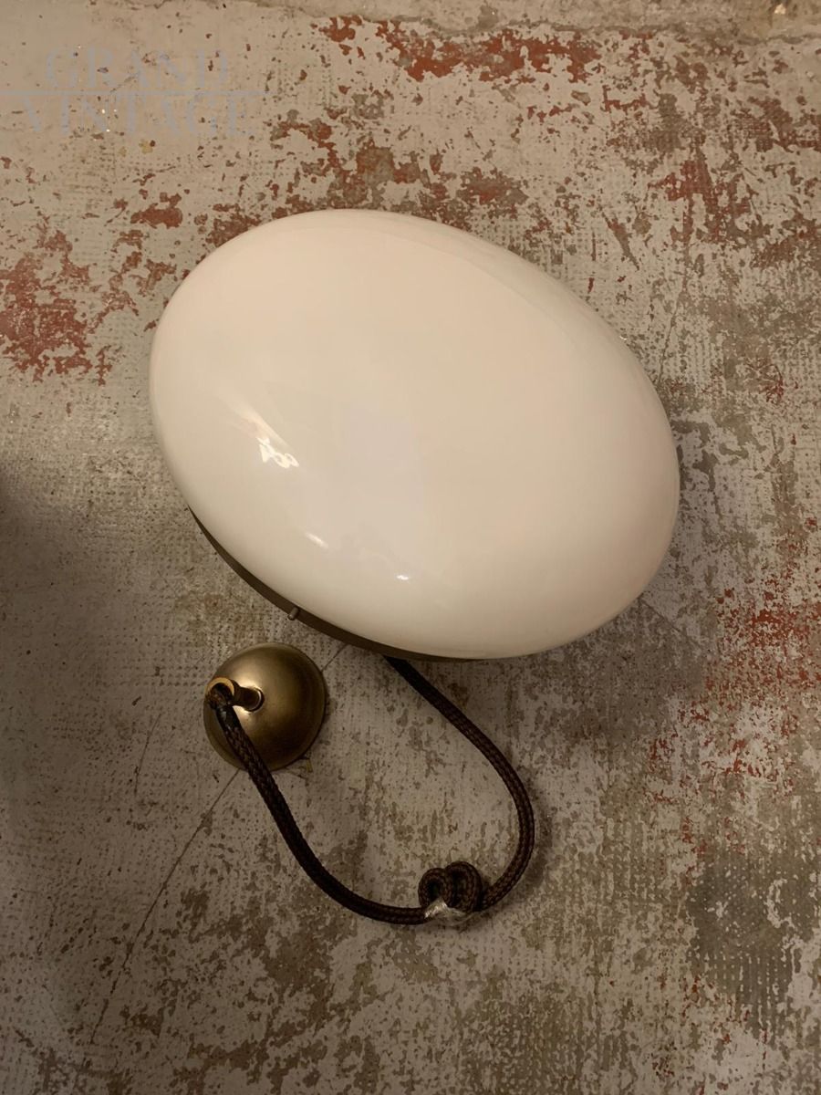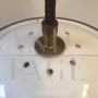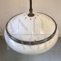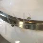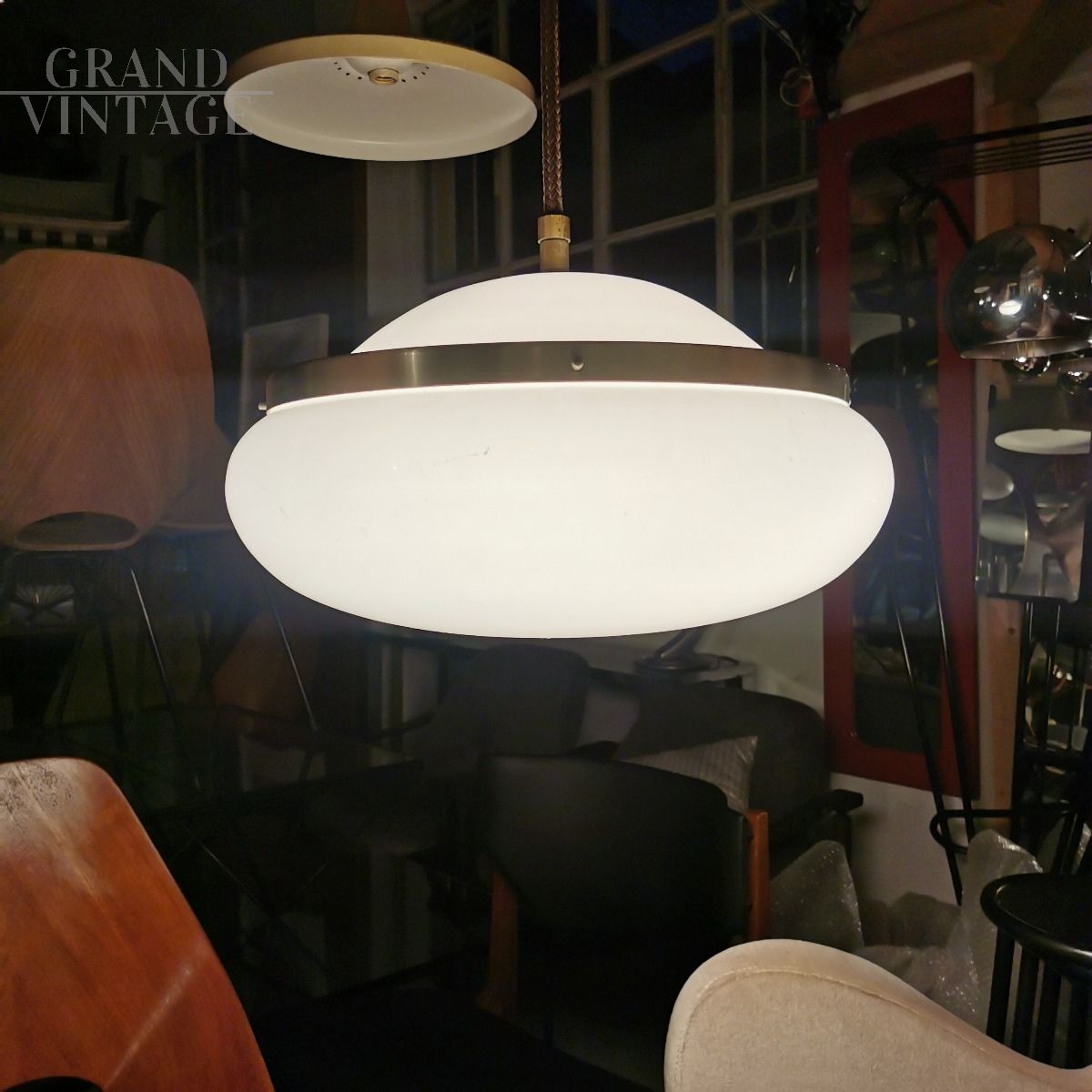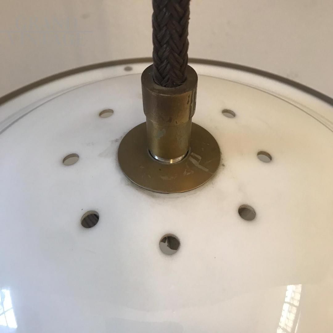 Lampada a sospensione a boccia disegnata da Gianemilio, Piero e Anna Monti per Kartell, modernariato italiano anni '60, in plastica e ottone nichelato, perfetto per arredare cucine o salotti.