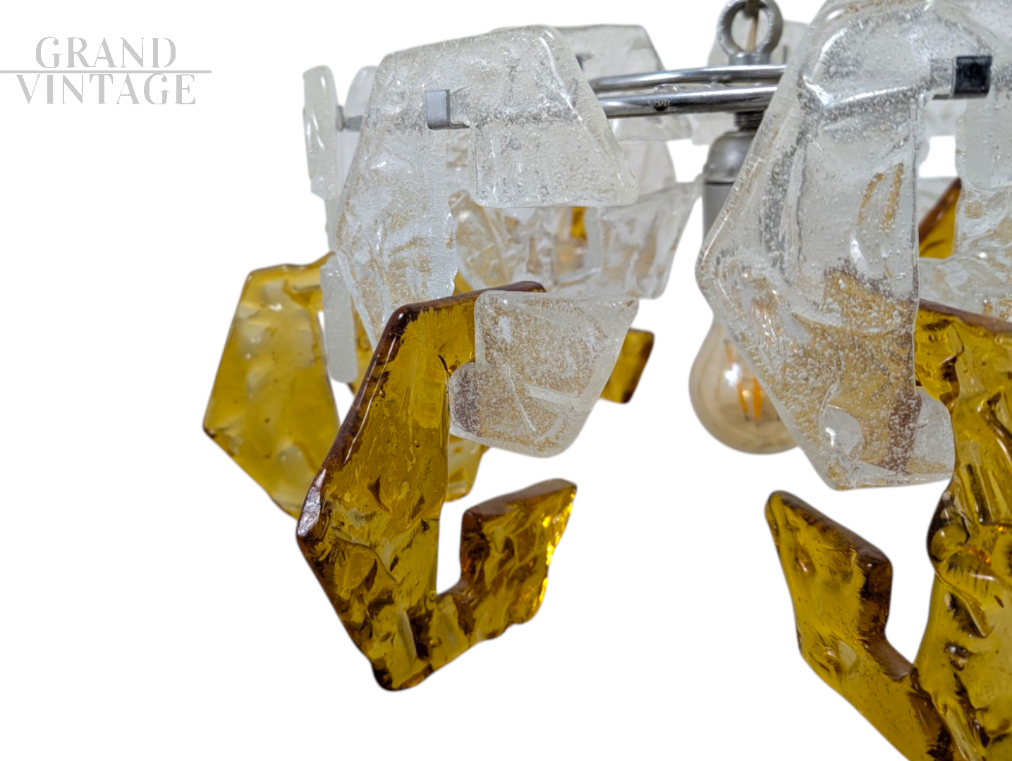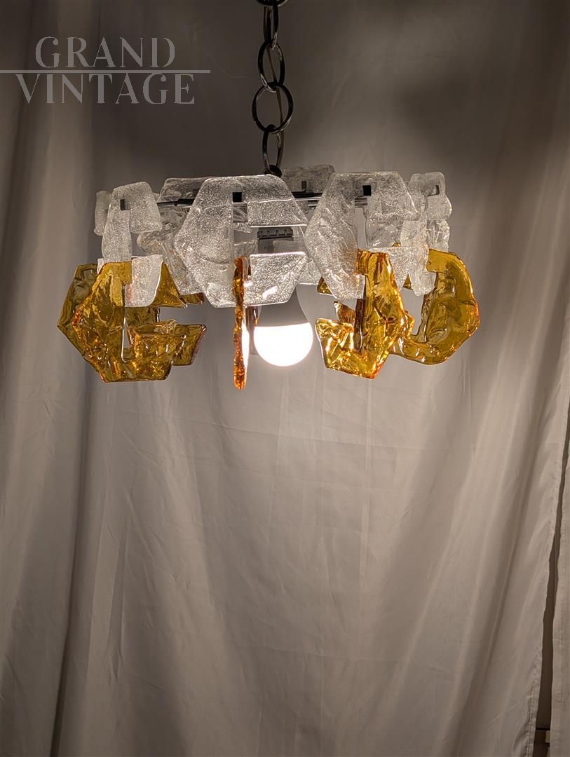 Lampadario con steli in vetro di Murano trasparente e ambrato, anni '70