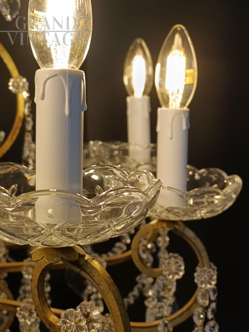 Lampadario in stile fiorentino in ferro dorato e cristallo