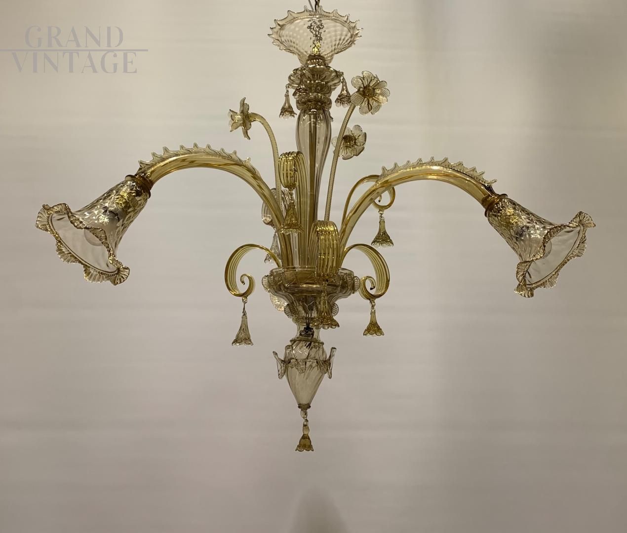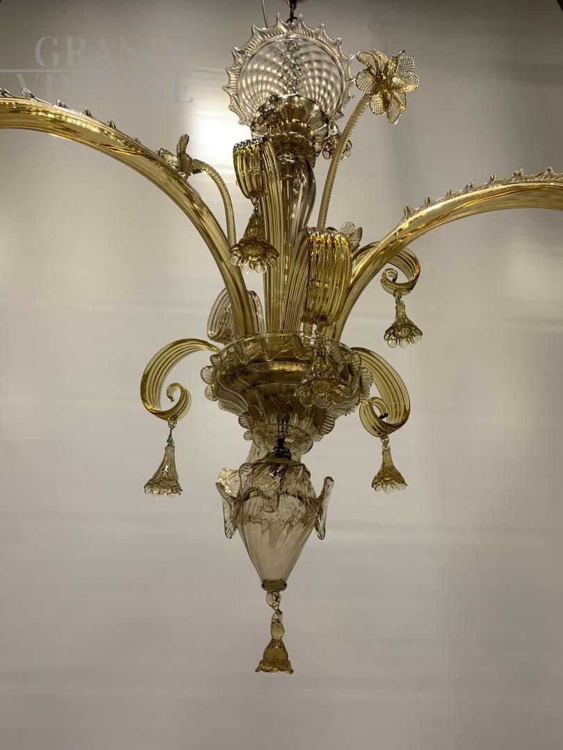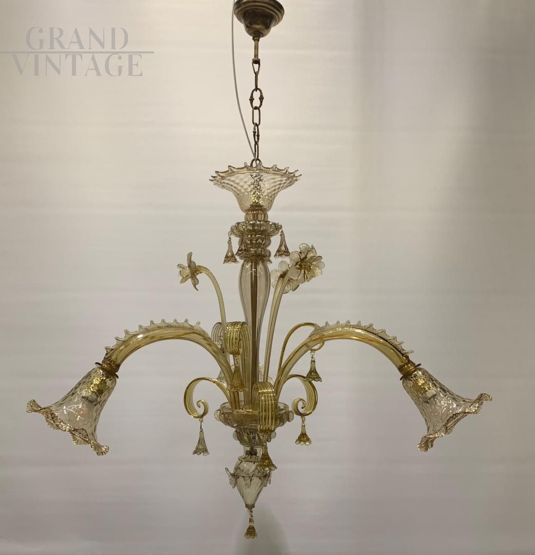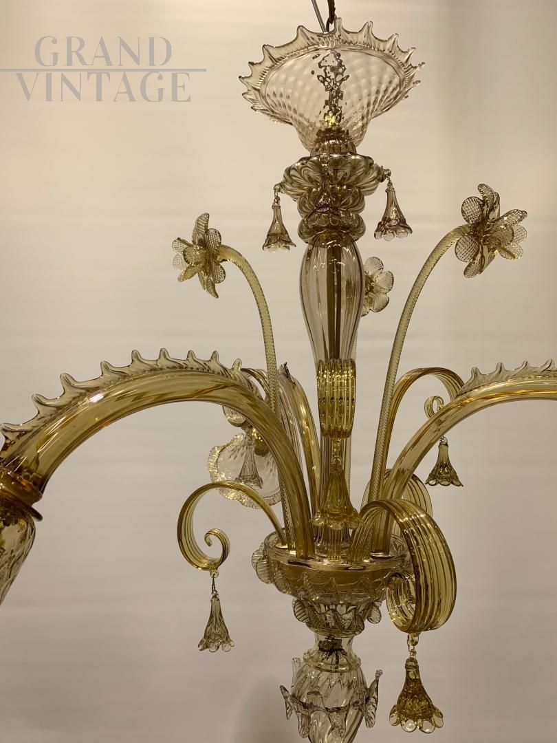 Lampadario in vetro di Murano ambrato attr. A.V.E.M.