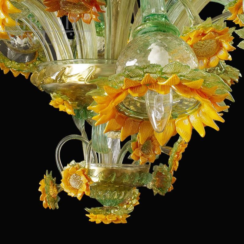 Lampadario in vetro di Murano artistico con girasoli - I-0048