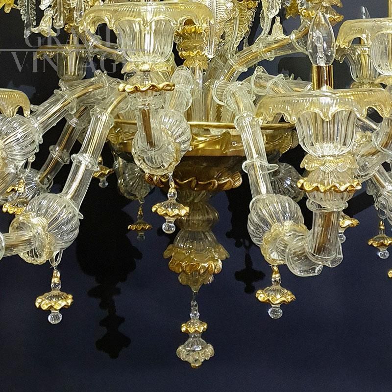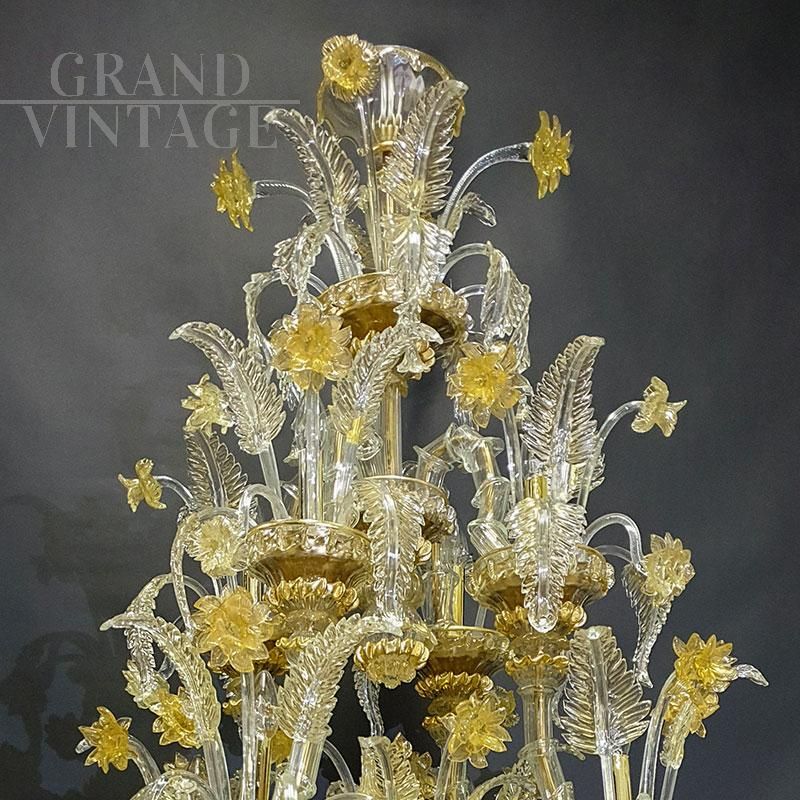 Lampadario in vetro di Murano cristallo oro con fiori dorati in stile Rezzonico-I-0058