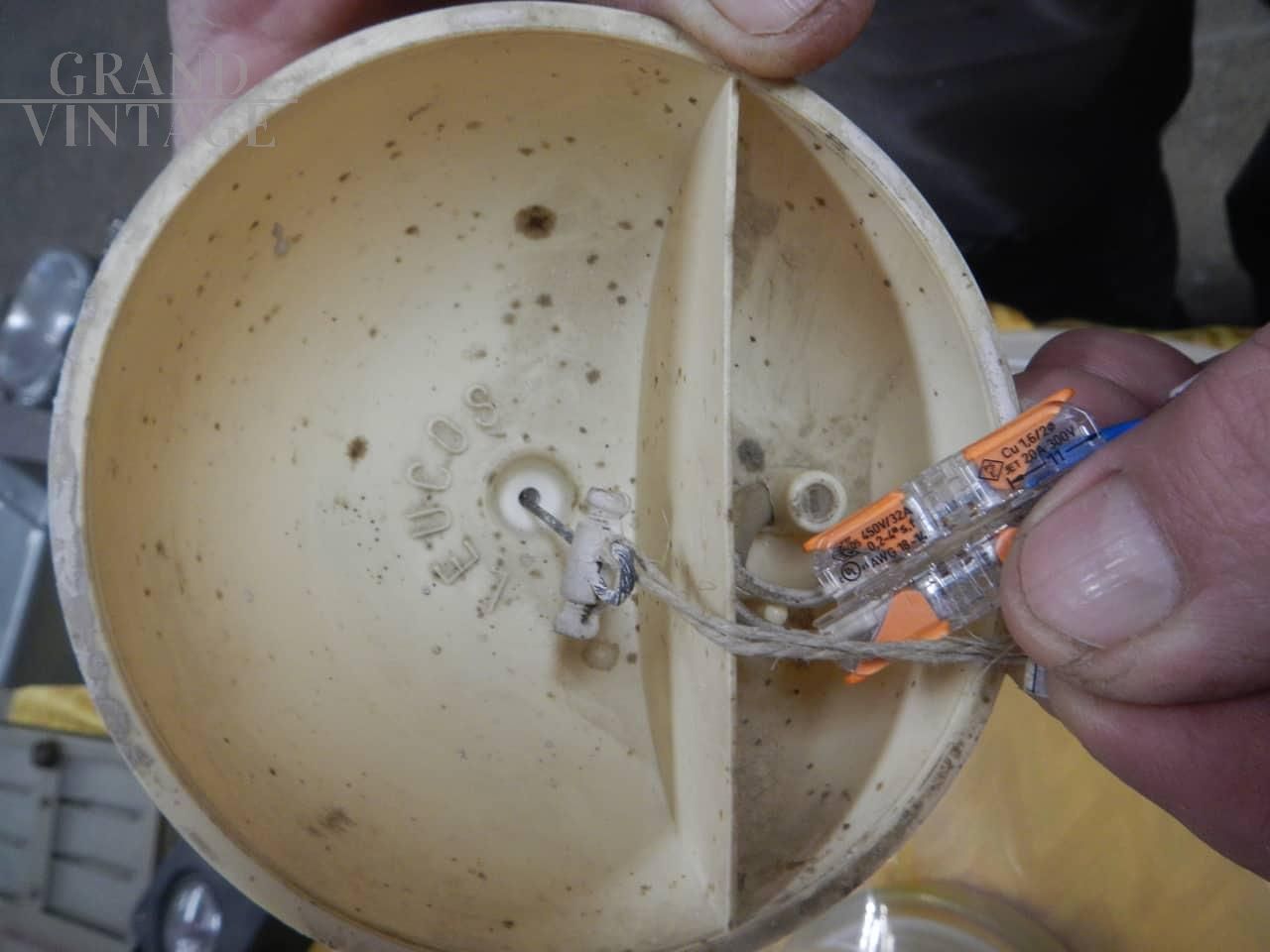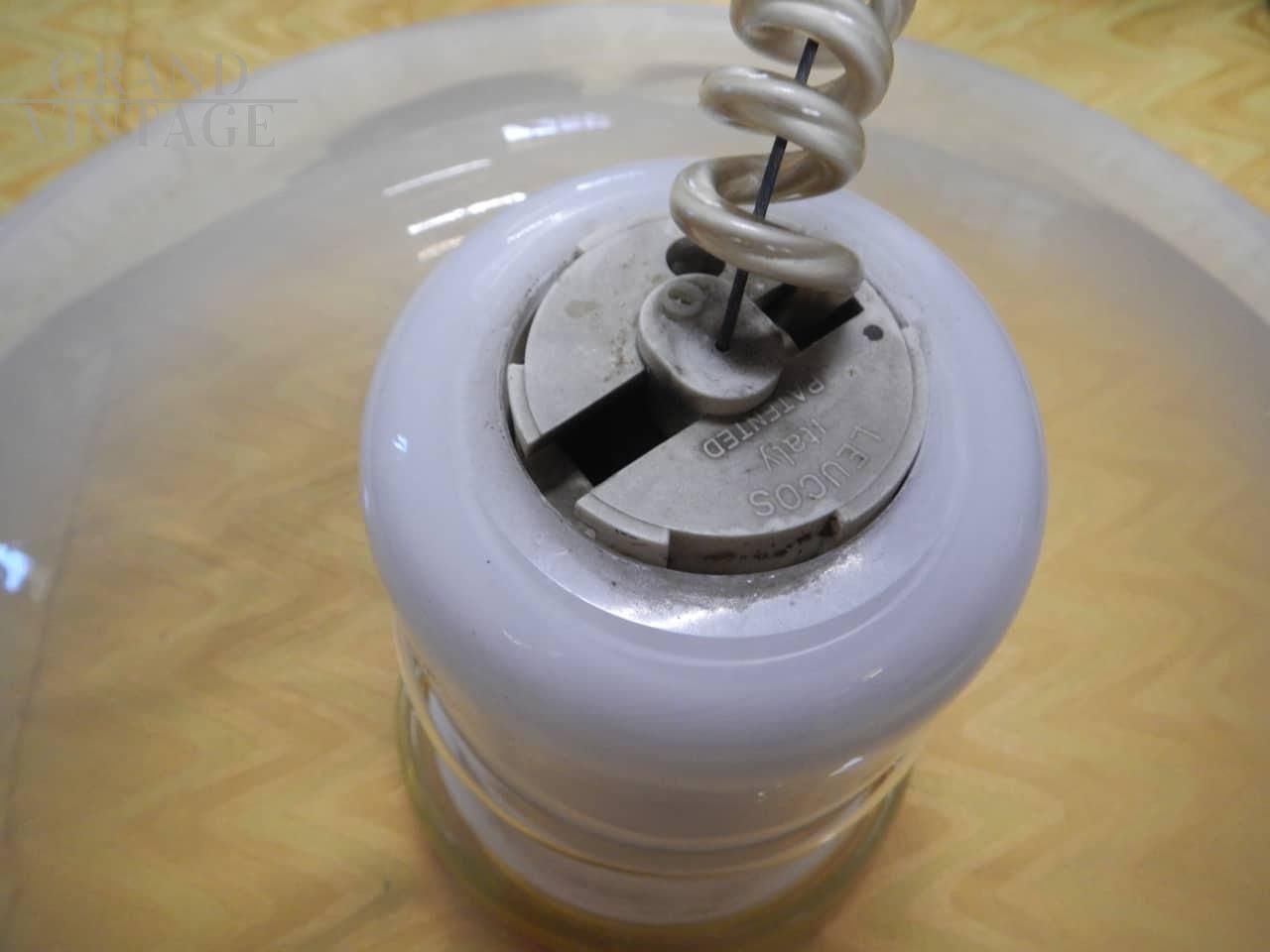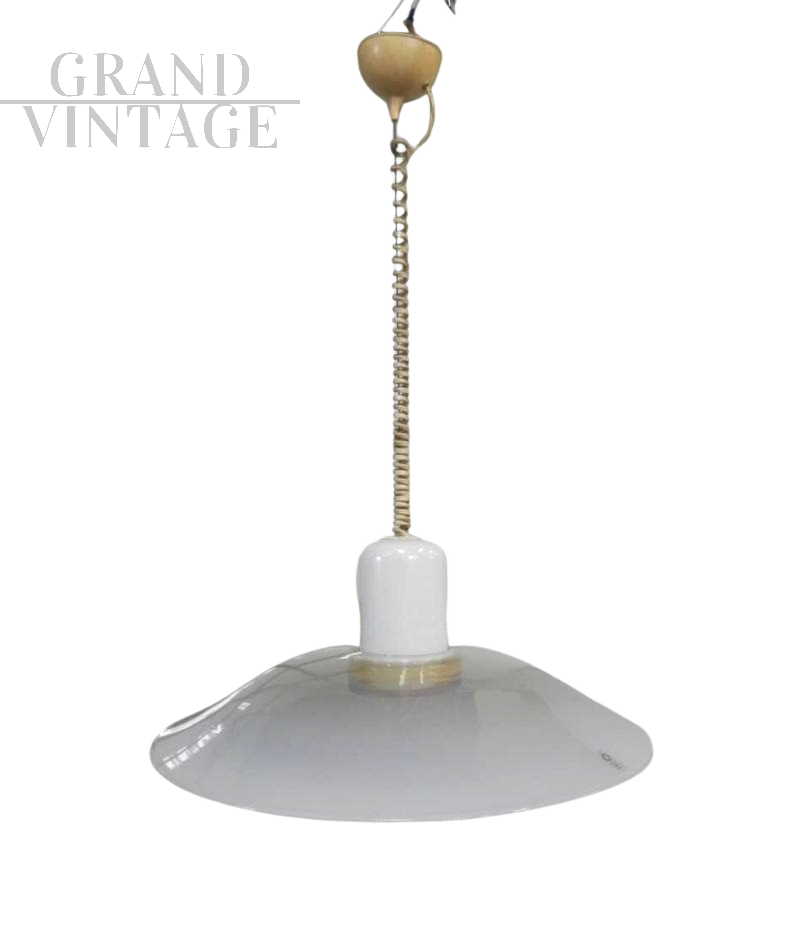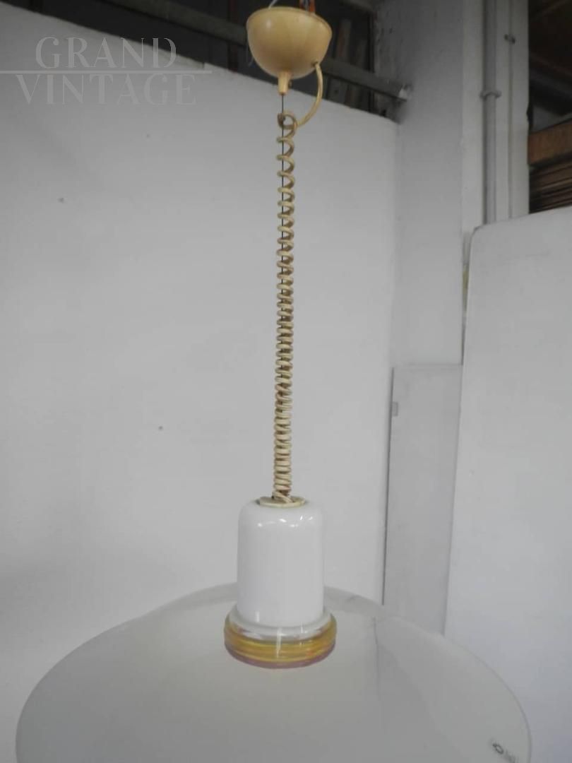 Lampadario design Leucos in vetro di Murano bianco e colorato giallo e rosso, con impianto originale, funzionante e in ottime condizioni.
