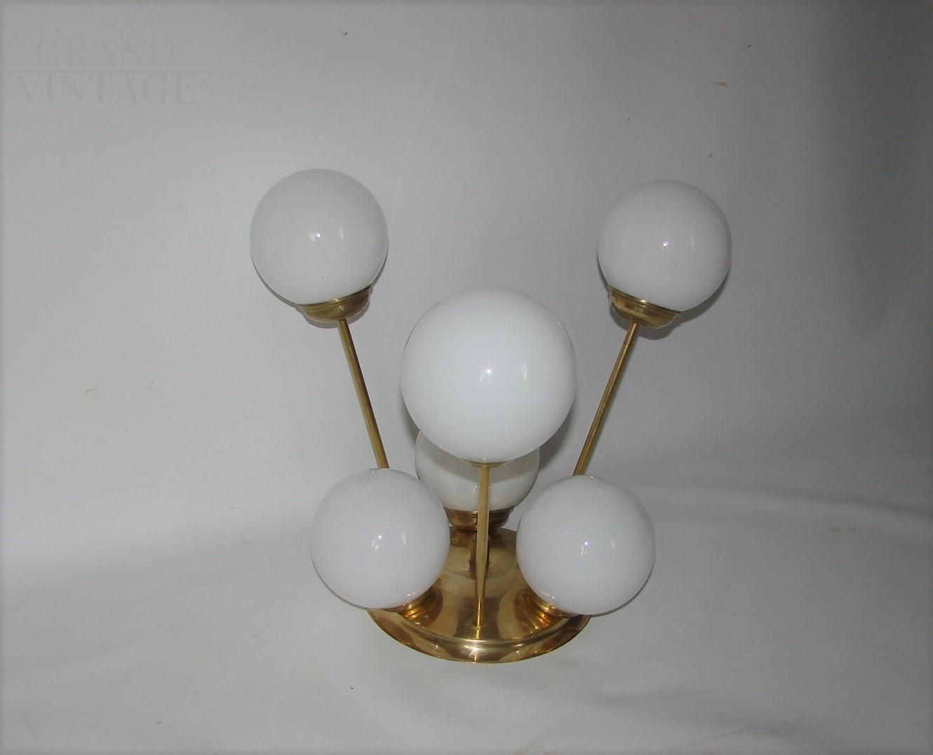 Lampadario modernariato anni '60 in stile space age a 6 luci