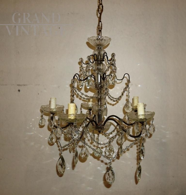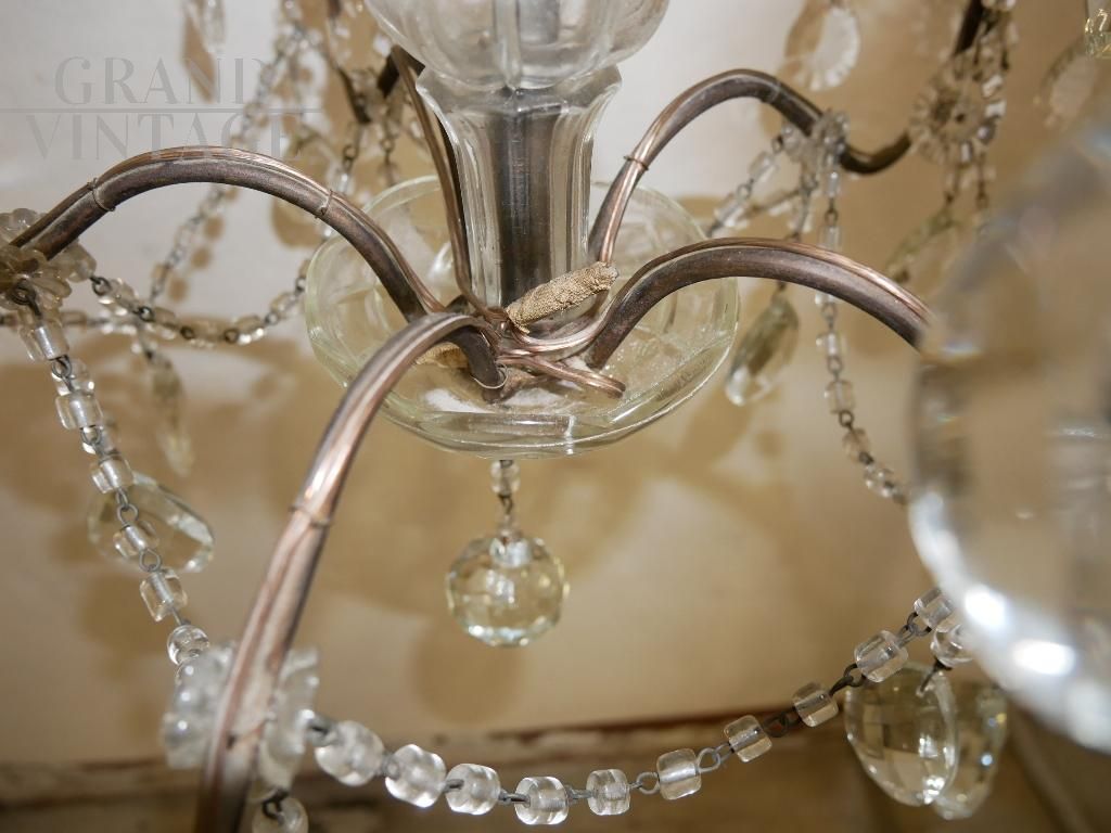 Lampadario vintage a 5 luci con gocce di vetro, anni '40 - '50
