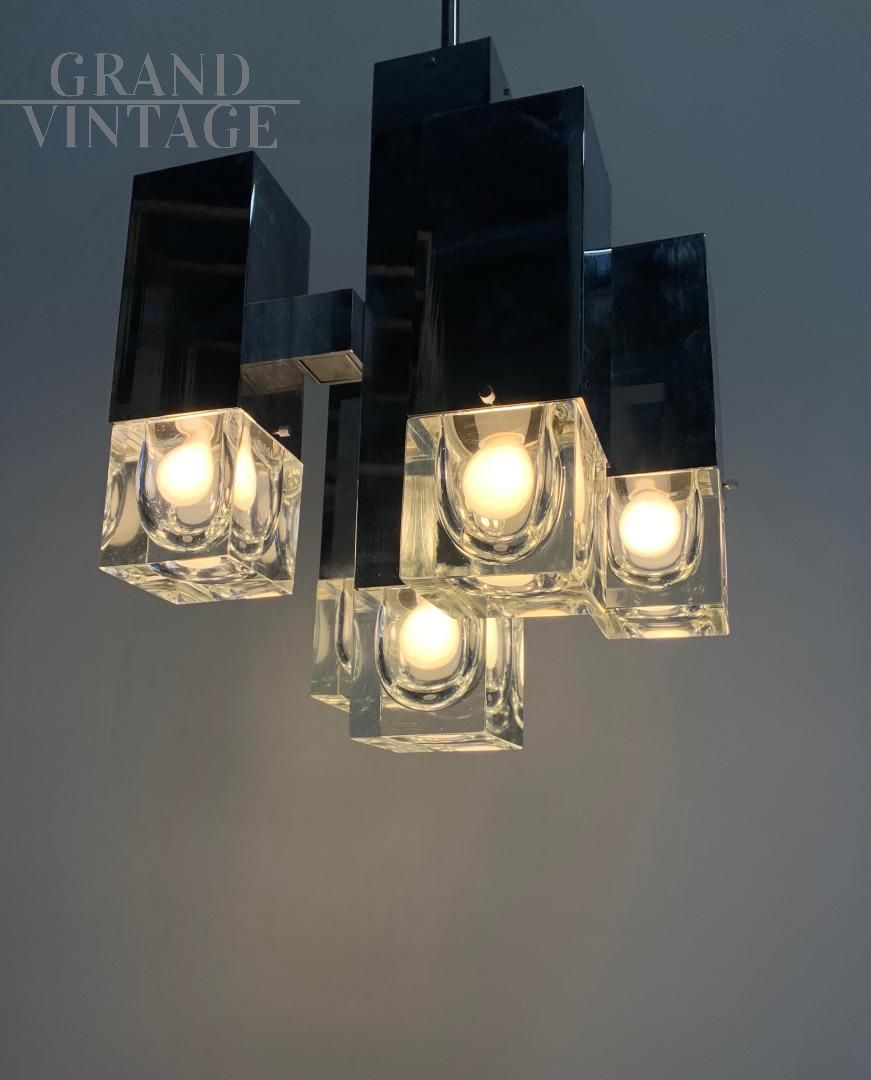 Lampadario vintage attribuito a Sciolari con 5 luci a cubo, anni '70