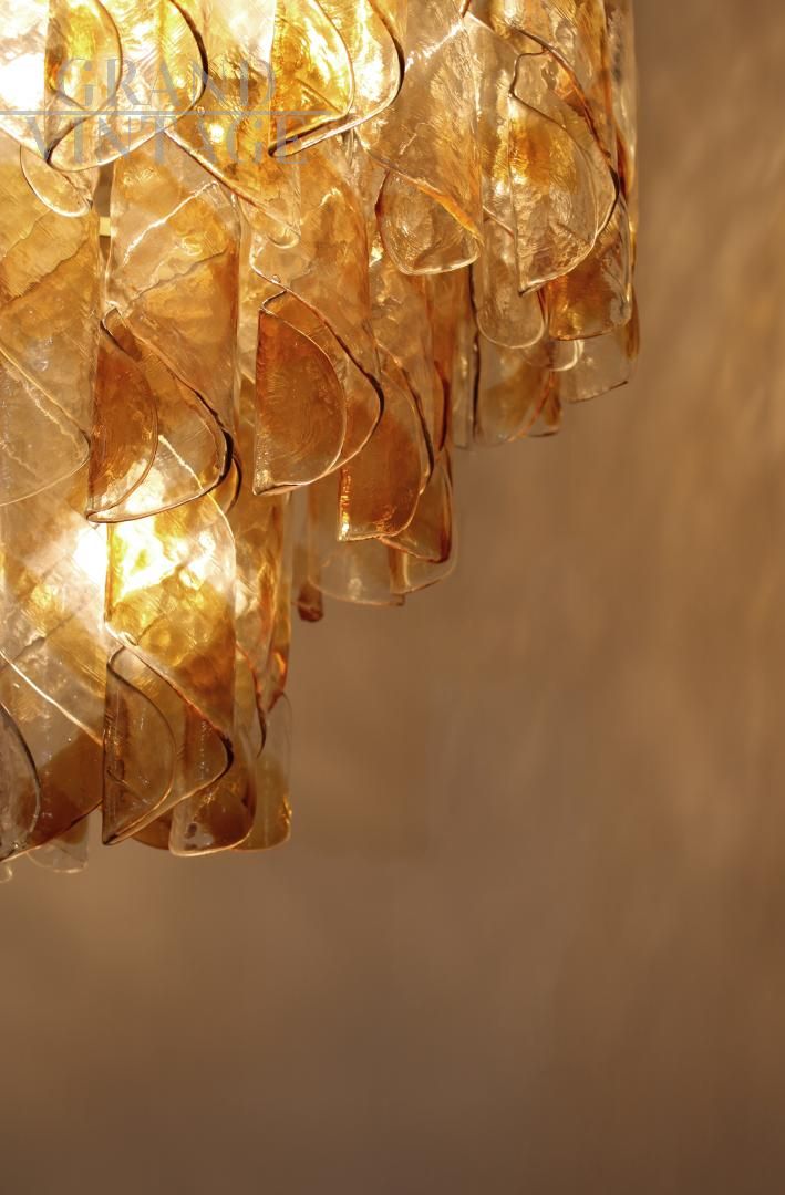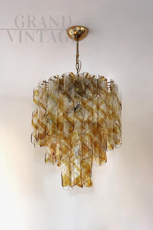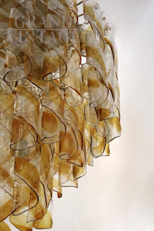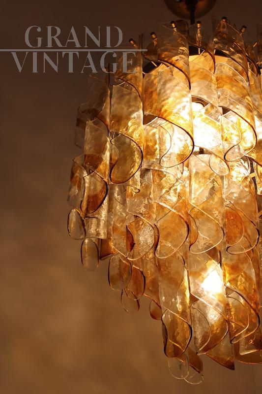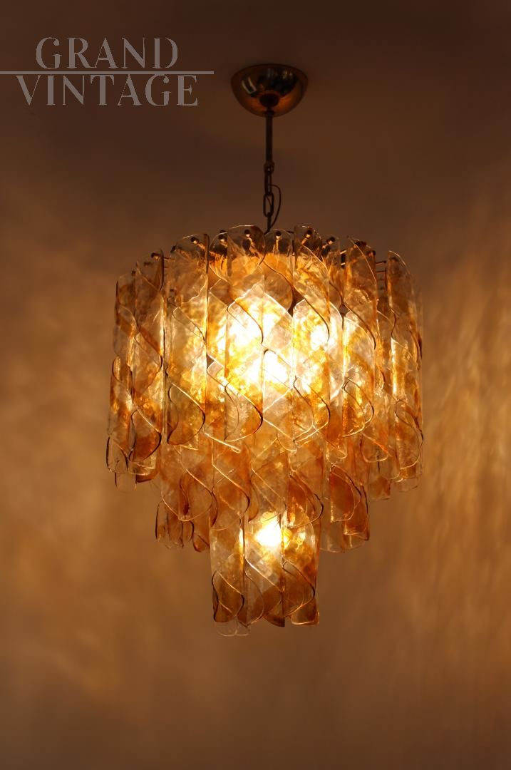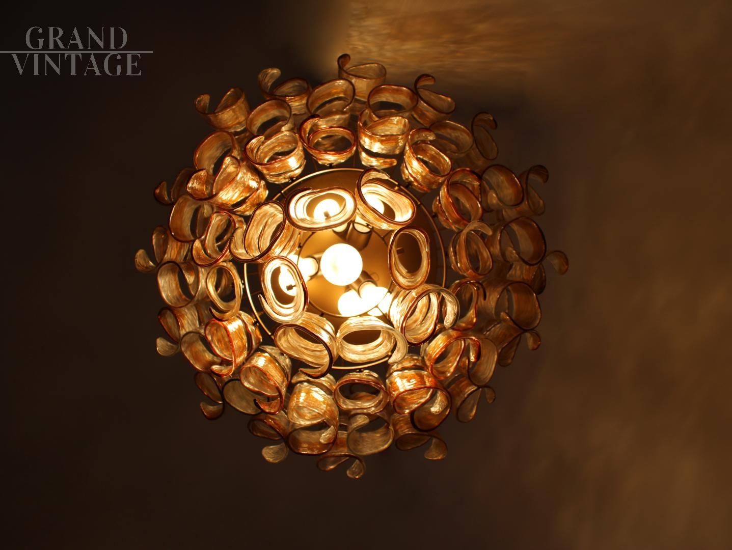 Lampadario vintage con riccioli in vetro di Murano color ambra, anni '70