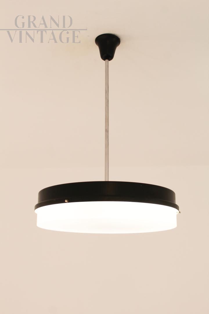 Lampadario lampada da soffitto vintage design Disano, Italia anni '60. Il lampadario è in ottime condizioni, semplicemente svitando lo stelo diventa una plafoniera da soffitto.