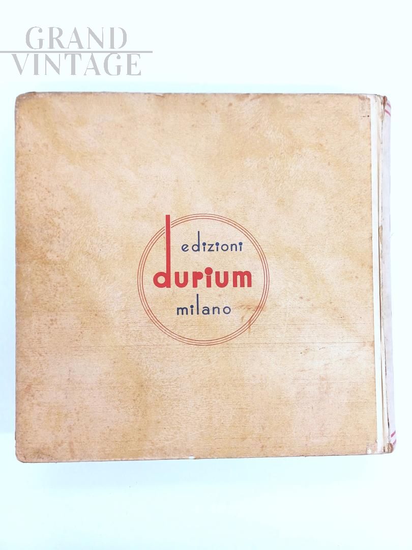 Edizione storica del capolavoro di Carlo Collodi, sceneggiato, parlato e cantato su 18 dischi da 78 giri Durium infrangibili (antecedente del vinile), suddivisi in 9 puntate (ogni puntata contiene due dischi in custodie cartonate illustrate). Cofanetto originale cartonato con dorso in tela e illustrazioni di Attilio Mussino. Dim cofanetto (cm) 28 x 27 x 5. Dim custodie (cm) 24,5 x 25 cm Edizione: Compagnia Durium, Milano Adattamento: A. Airoldi e G. Cantini. Commenti musicali: M. Mariotti. Scenari e figure: Attilio Mussino. Anno: 1933-1934 Condizioni: ottime, buon esemplare di questa opera originale dell'epoca, cofanetto con tracce d'uso su bordi e rilegatura.