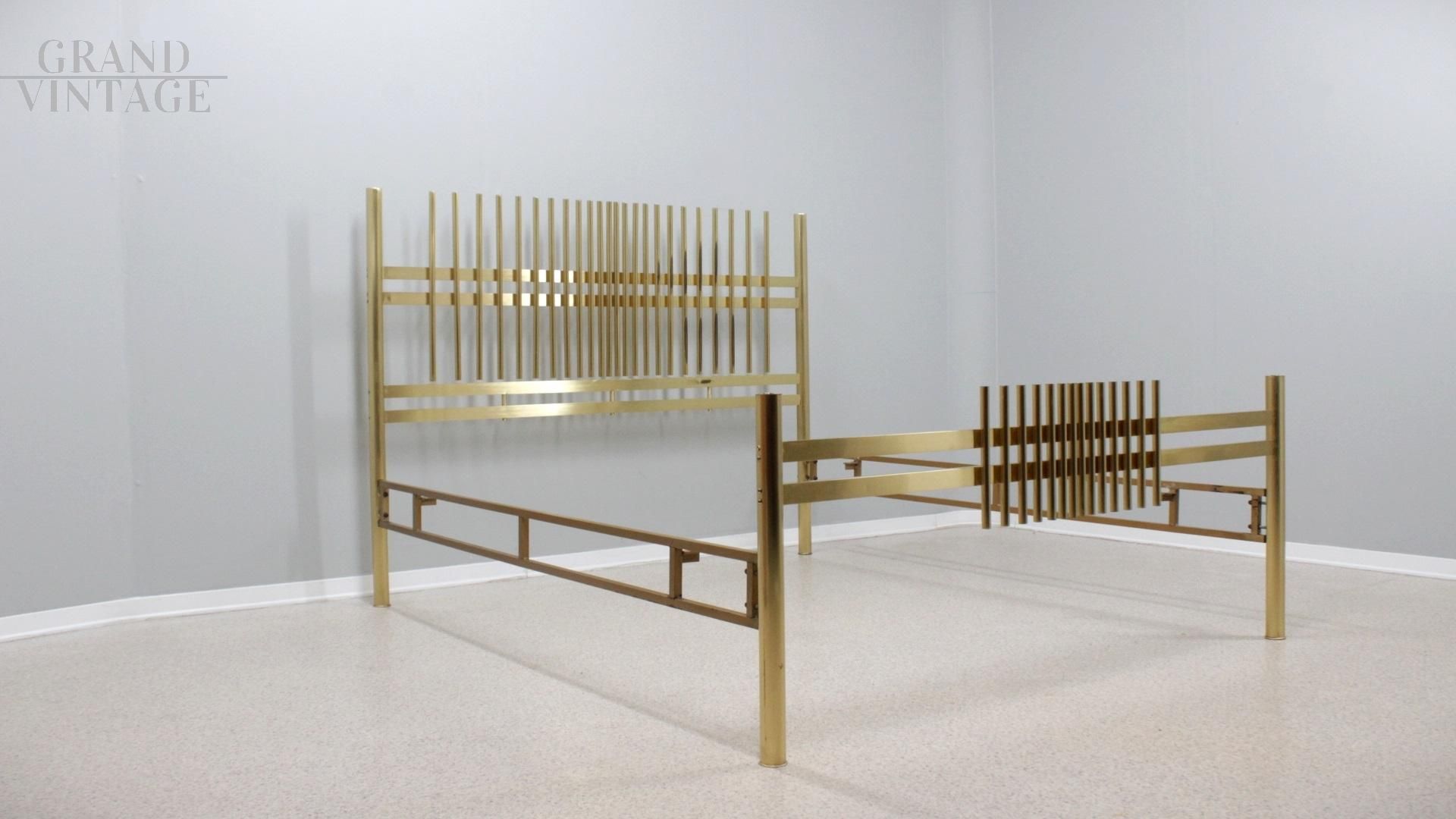 Letto vintage attr. Luciano Frigerio in ottone dorato, anni '70