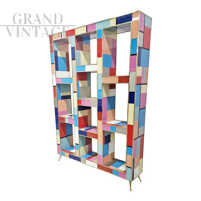 Libreria bifacciale a giorno in vetro di Murano multicolore