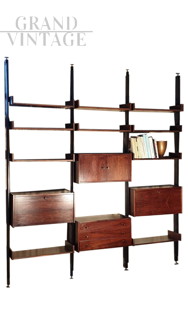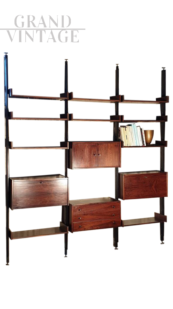 Libreria in palissandro formata da 3 moduli, anni '70, Ditta Sormani, Arosio (CO) Italia.