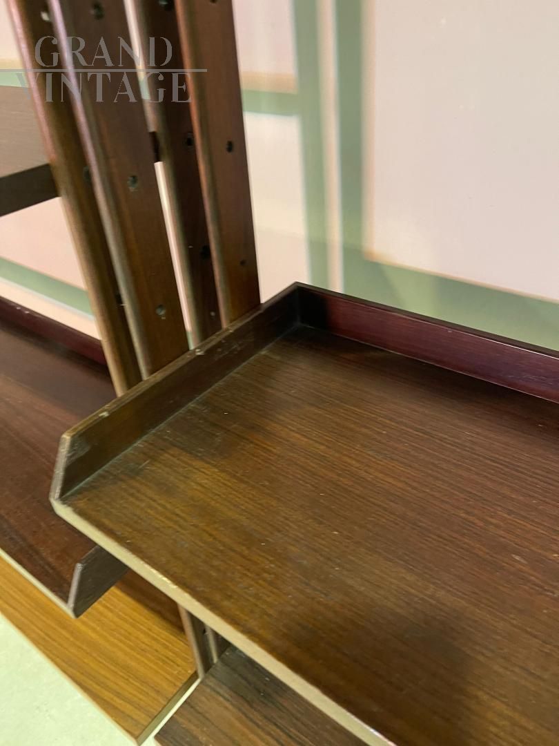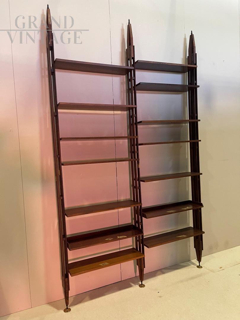 Icona del design italiano degli anni '50, la libreria a soffitto modello LB7 di Franco Albini è un raffinato esempio di equilibrio tra estetica funzionale e innovazione tecnica. Questa struttura autoportante è progettata per essere fissata a pressione tra soffitto e pavimento, senza necessità di fori o ancoraggi permanenti, garantendo al tempo stesso grande stabilità. Realizzata in legno massello di teak, presenta 14 ripiani regolabili in altezza, che scorrono lungo montanti verticali con eleganti innesti a scomparsa. Il sistema modulare consente una personalizzazione completa dell’allestimento, adattandosi perfettamente a spazi domestici o professionali. La LB7 rappresenta un perfetto connubio tra artigianato e modernismo razionale, ed è ancora oggi ricercata da molti.
