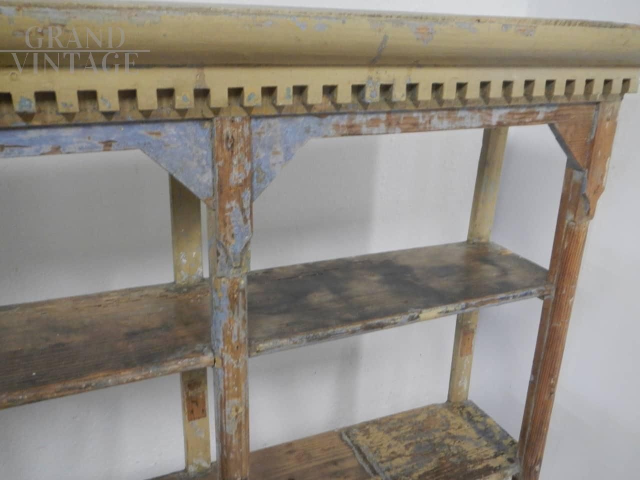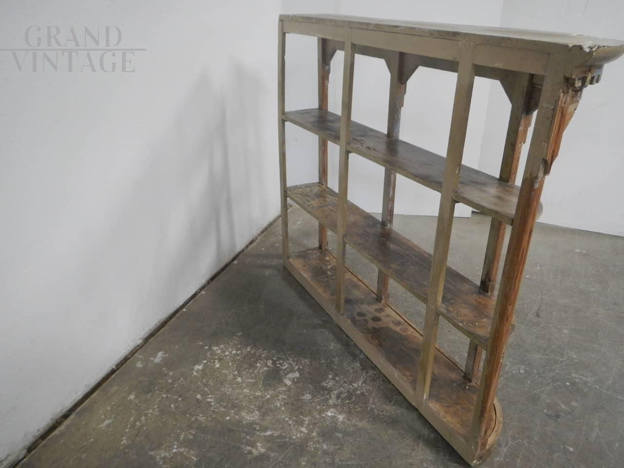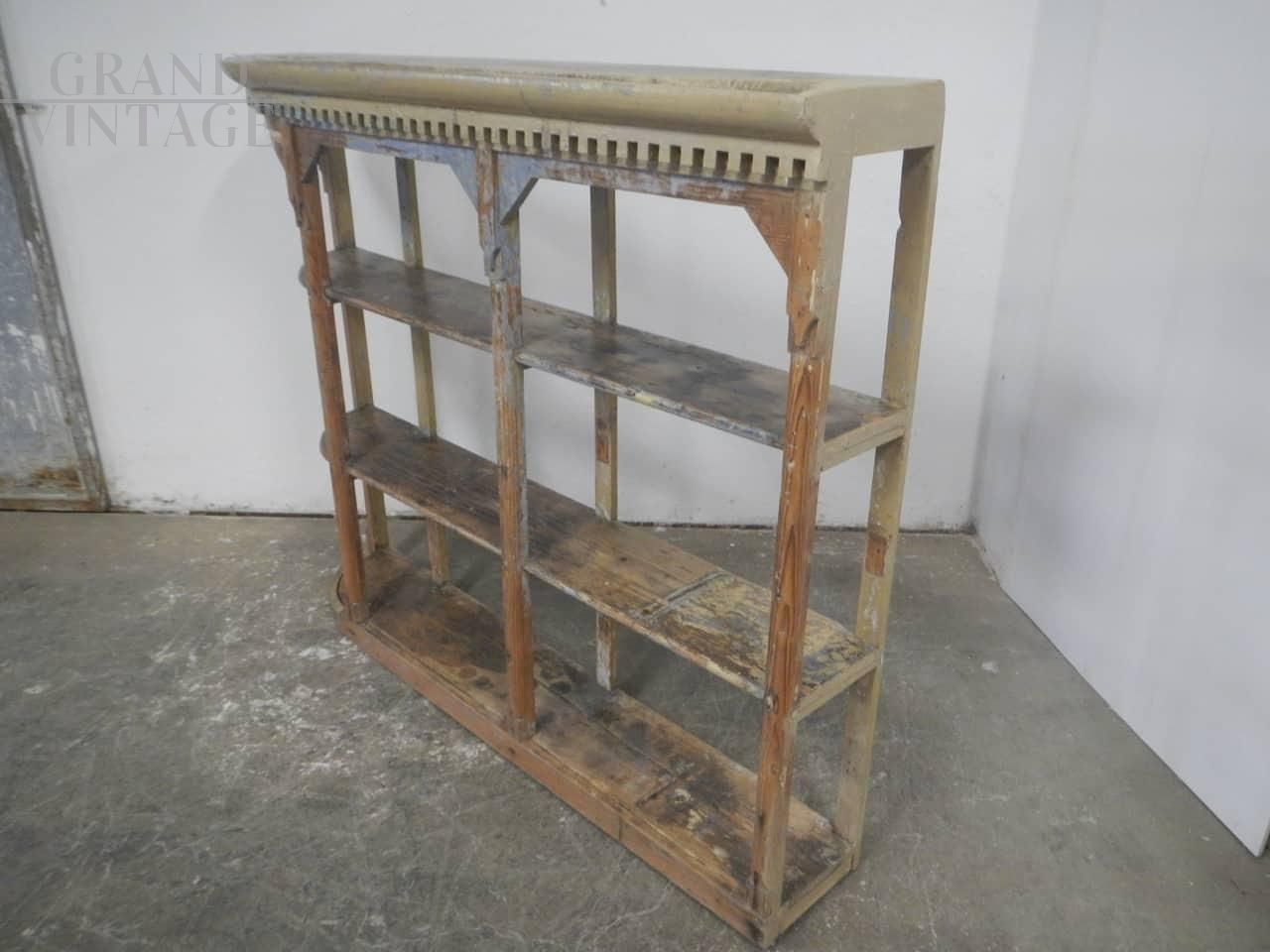 Libreria scaffale vintage anni '40 in abete laccato con intagli