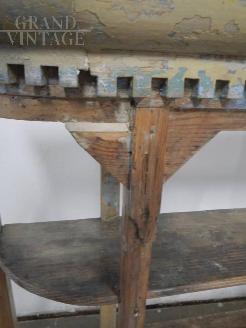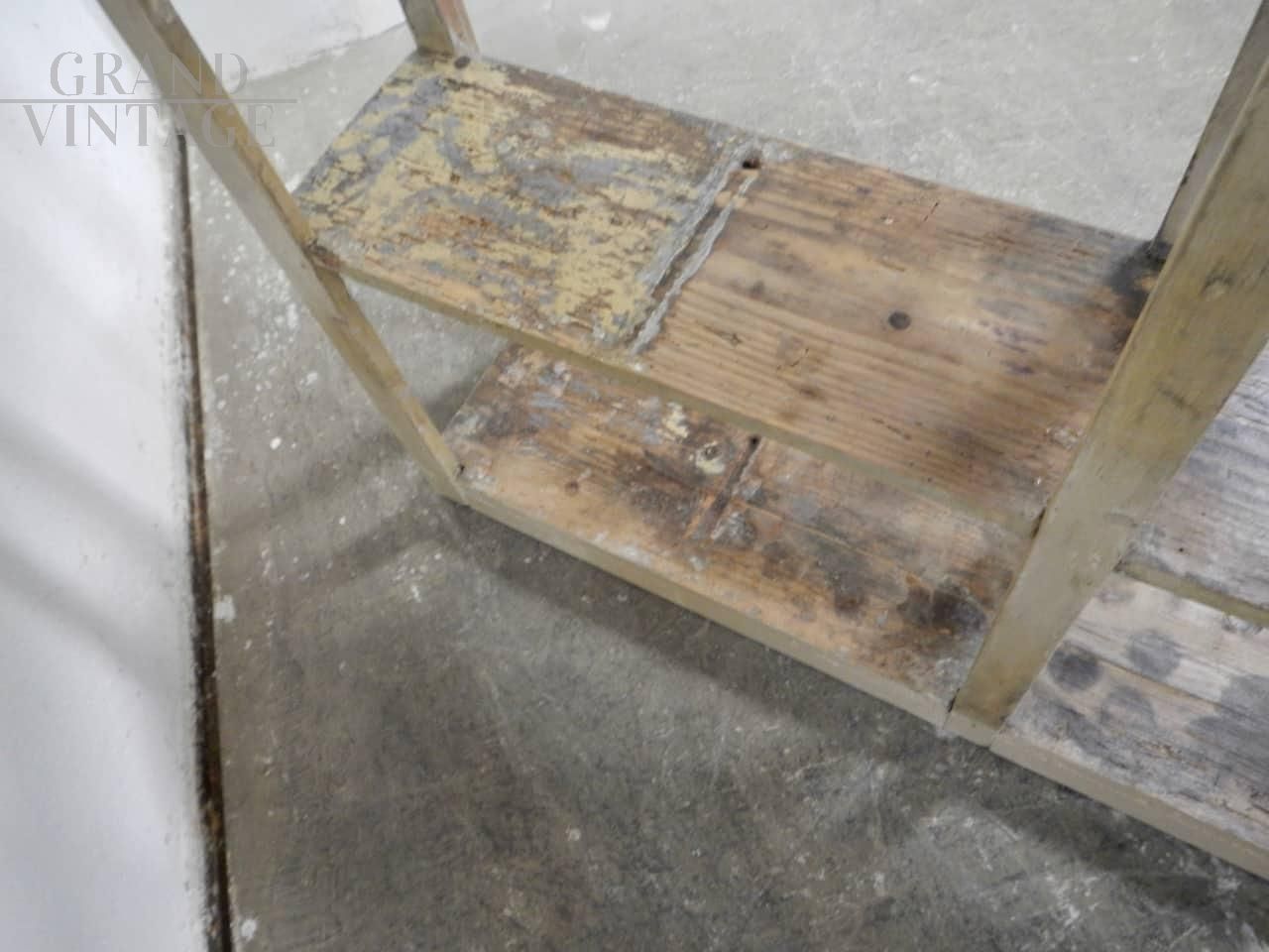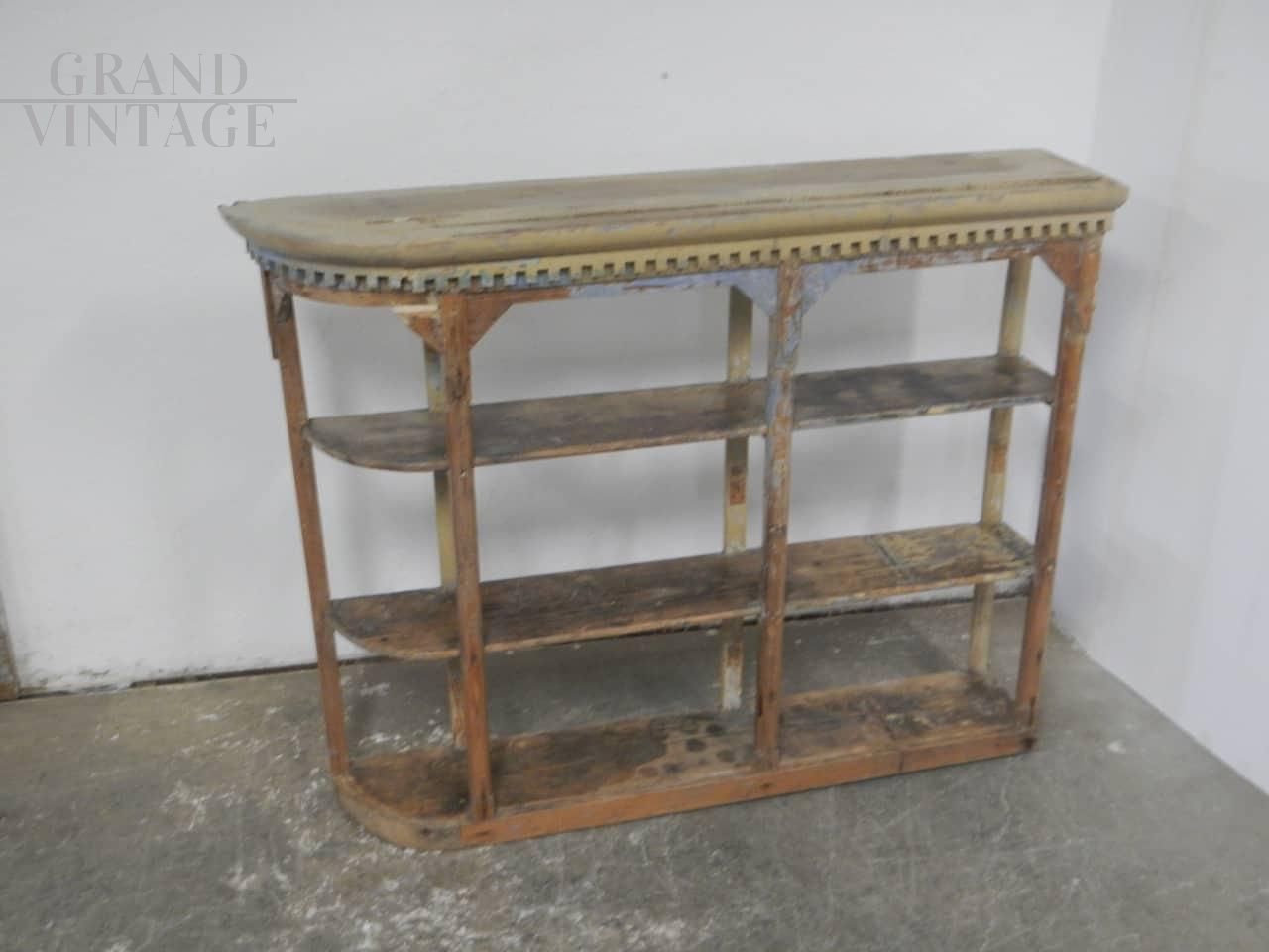 Libreria scaffale vintage anni '40 in abete laccato con intagli