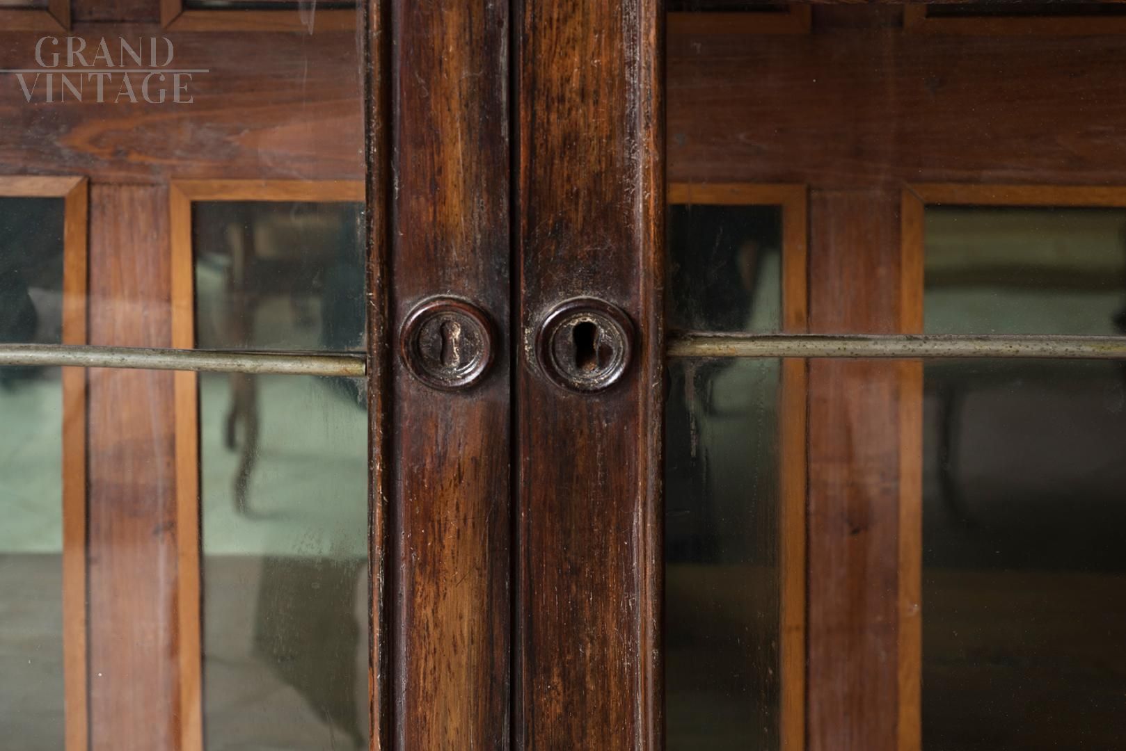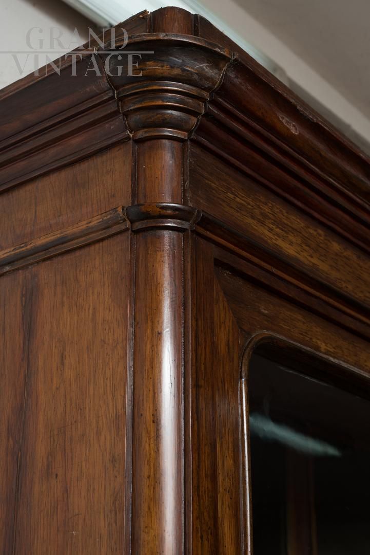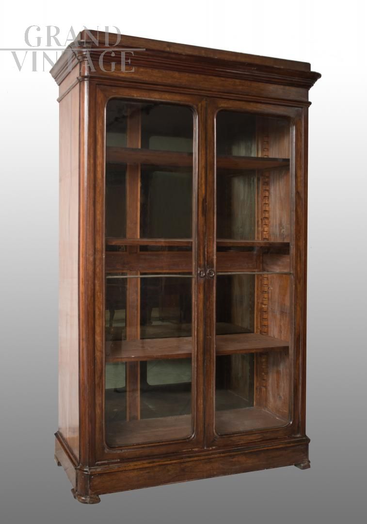 Libreria vetrina antica Luigi Filippo in legni esotici pregiati