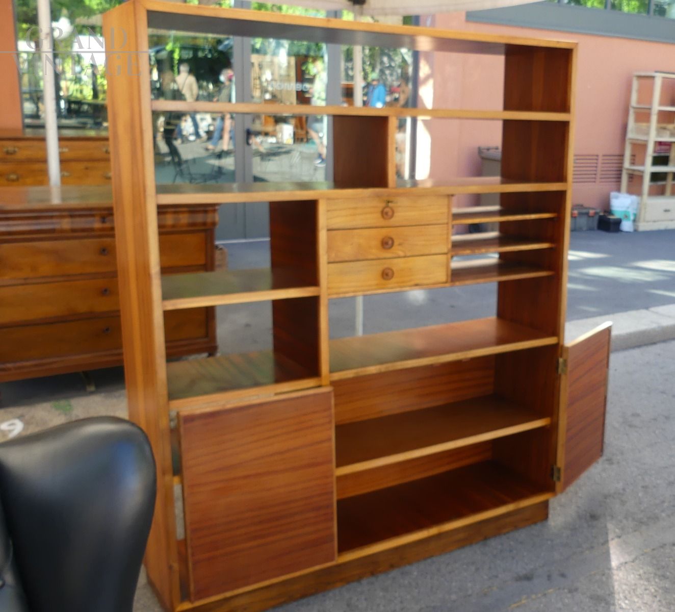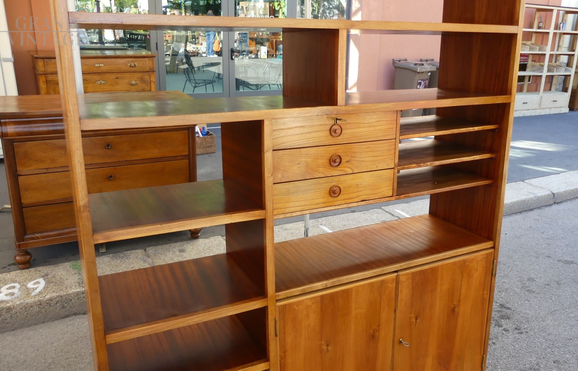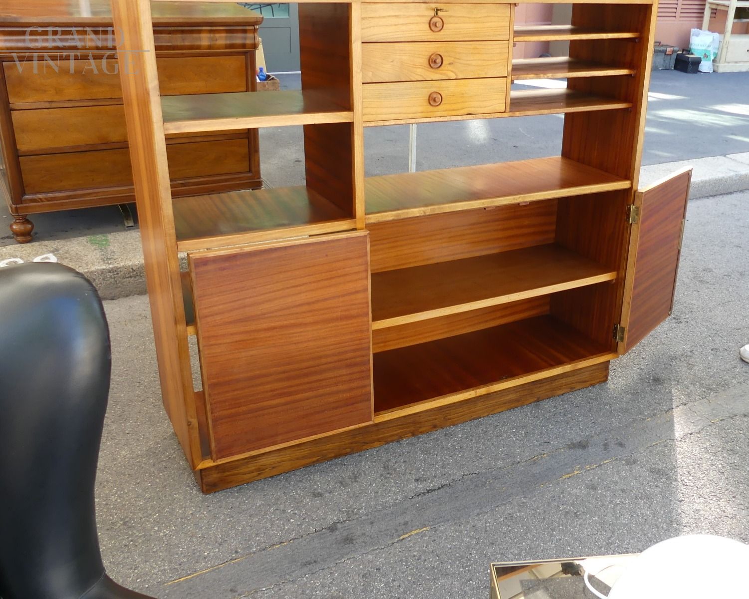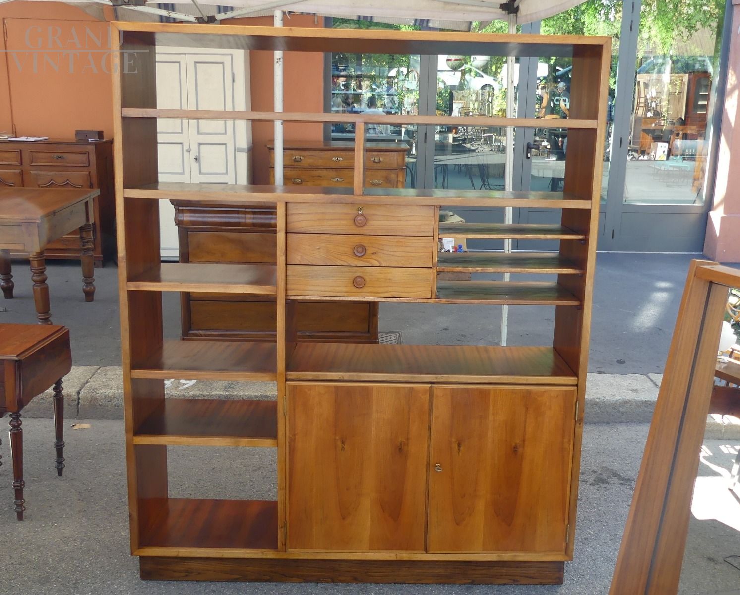 Libreria vintage a giorno con moduli a cassetti e ante, anni '50