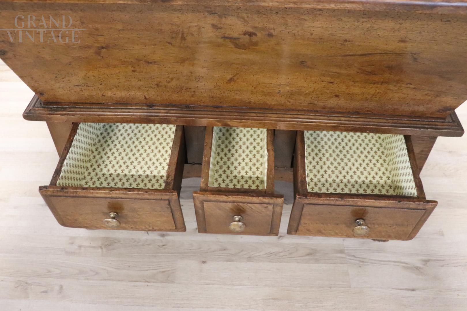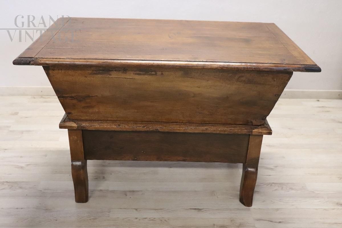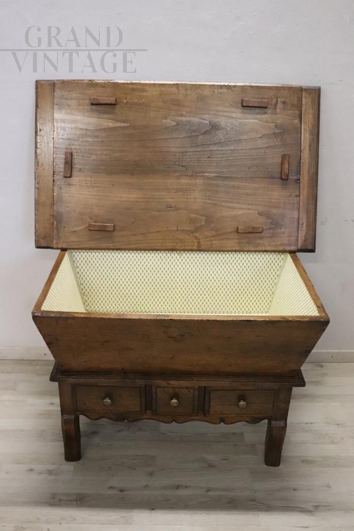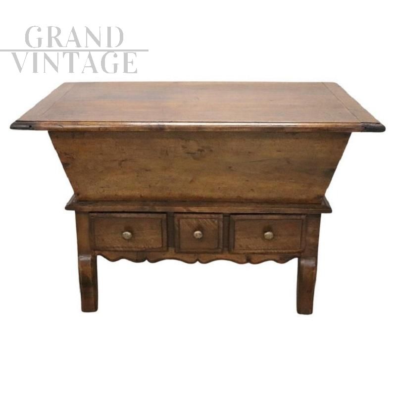 Questa squisita madia antica italiana, realizzata in legno di pioppo massiccio nel XIX secolo, è una testimonianza di semplicità e praticità. Il suo design pulito e lineare, privo di ornamenti eccessivi, la rende un complemento versatile per qualsiasi stile di arredamento. La madia è caratterizzata da un robusto piano in legno che si apre per rivelare un ampio vano interno, perfetto per una varietà di usi. Al di sotto, tre piccoli cassetti consentono di riporre comodamente gli oggetti più piccoli, migliorando la sua funzionalità. la madia è stata accuratamente restaurata per preservare il suo fascino originale, conservando i caratteristici segni del tempo. Prezzo trattabile.