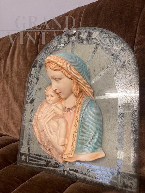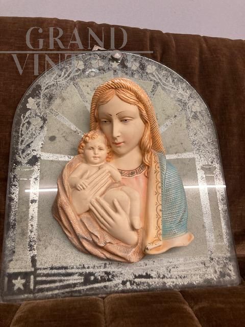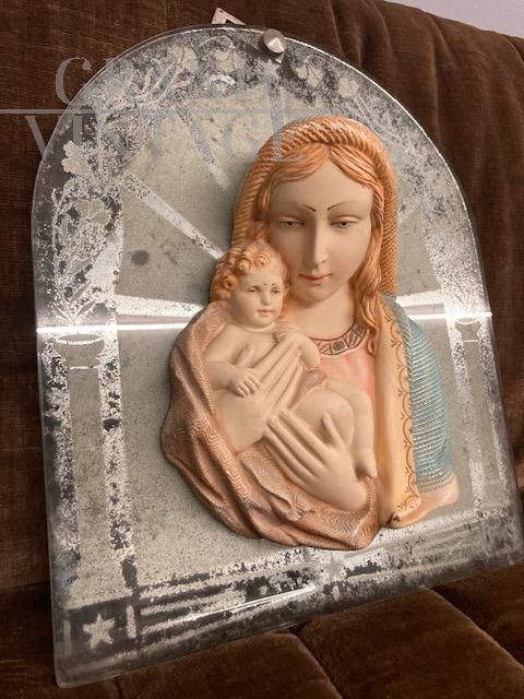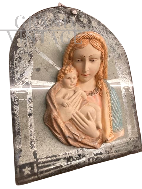 Madonna capoletto in ceramica anni '40 su base a specchio