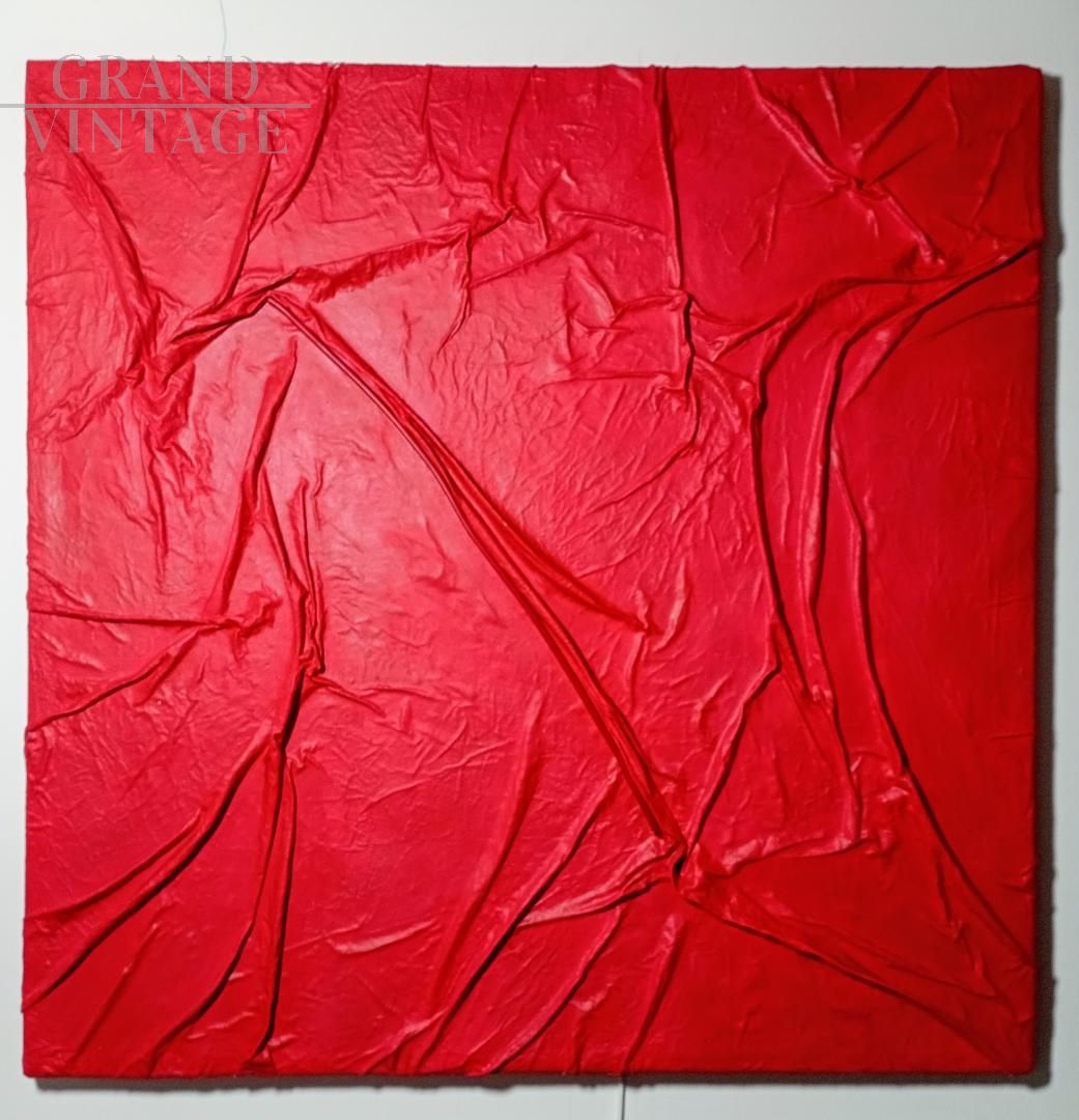 Dipinto contemporaneo astratto a tecnica mista su tela con pigmenti e resine dal titolo Manzoni 4.0, realizzato da Rolando Pellini in un bel colore rosso vivo con illuminazione a led di 220 volt, cavo di alimentazione di 4 mt compreso.